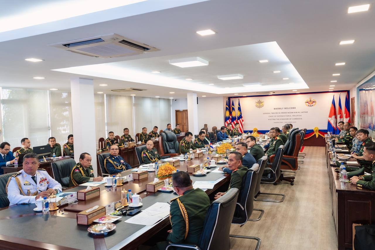 (ភ្នំពេញ)៖ នៅព្រឹកថ្ងៃទី០៧ ខែធ្នូ ឆ្នាំ២០២៥ ឯកឧត្តម នាយឧត្តមសេនីយ៍ វង្ស ពិសេន អគ្គមេបញ្ជាការ នៃកងយោធពលខេមរភូមិន្ទ បានជួបពិភាក្សាការងារទ្វេភាគី ជាមួយឯកឧត្តម នាយឧត្ដមសេនីយ៍ Tan Sri Hj Mohd Nizam bin Hj Jaffar អគ្គមេបញ្ជាការកងទ័ពម៉ាឡេស៊ី ក្នុងអំឡុងពេលដែលឯកឧត្តមដឹកនាំគណៈប្រតិភូមកបំពេញទស្សនកិច្ចនៅព្រះរាជាណាចក្រកម្ពុជា។