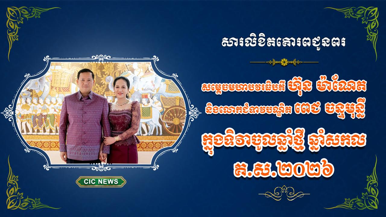 (ភ្នំពេញ)៖ ឯកឧត្ដម នាយឧត្តមសេនីយ៍ គីម ប៊ុនថាន អគ្គមេបញ្ជាការរងកងយោធពលខេមរភូមិន្ទ បានផ្ញើសារលិខិតគោរពជូនពរ សម្តេចមហាបវរធិបតី ហ៊ុន ម៉ាណែត នាយករដ្ឋមន្រ្តីនៃព្រះរាជាណាចក្រកម្ពុជា និងលោកជំទាវបណ្ឌិត ពេជ ចន្ទមុន្នី ហ៊ុនម៉ាណែត ក្នុងឱកាសចូលឆ្នាំថ្មី ឆ្នាំសកល គ.ស.២០២៦។
