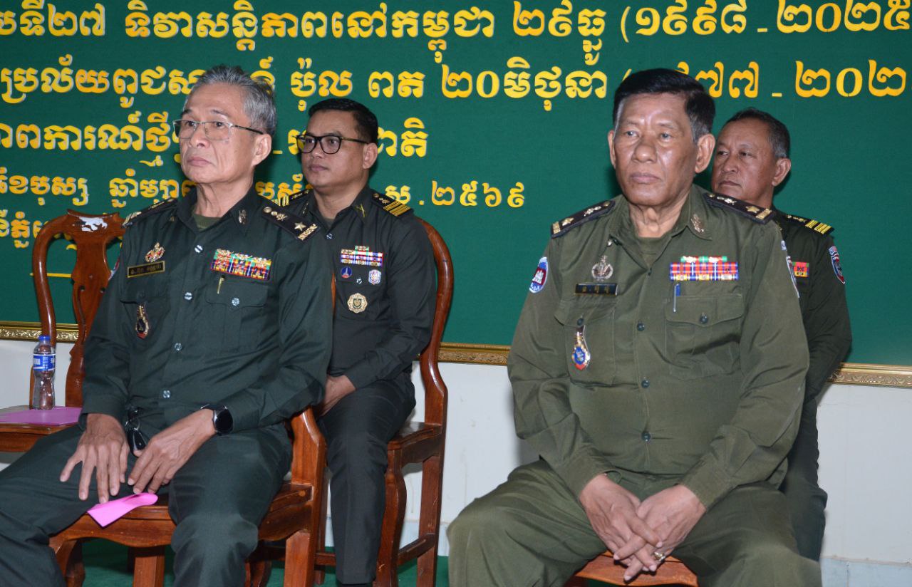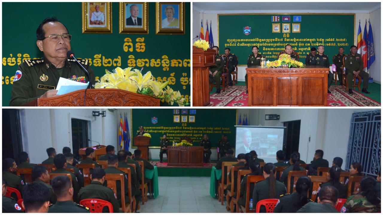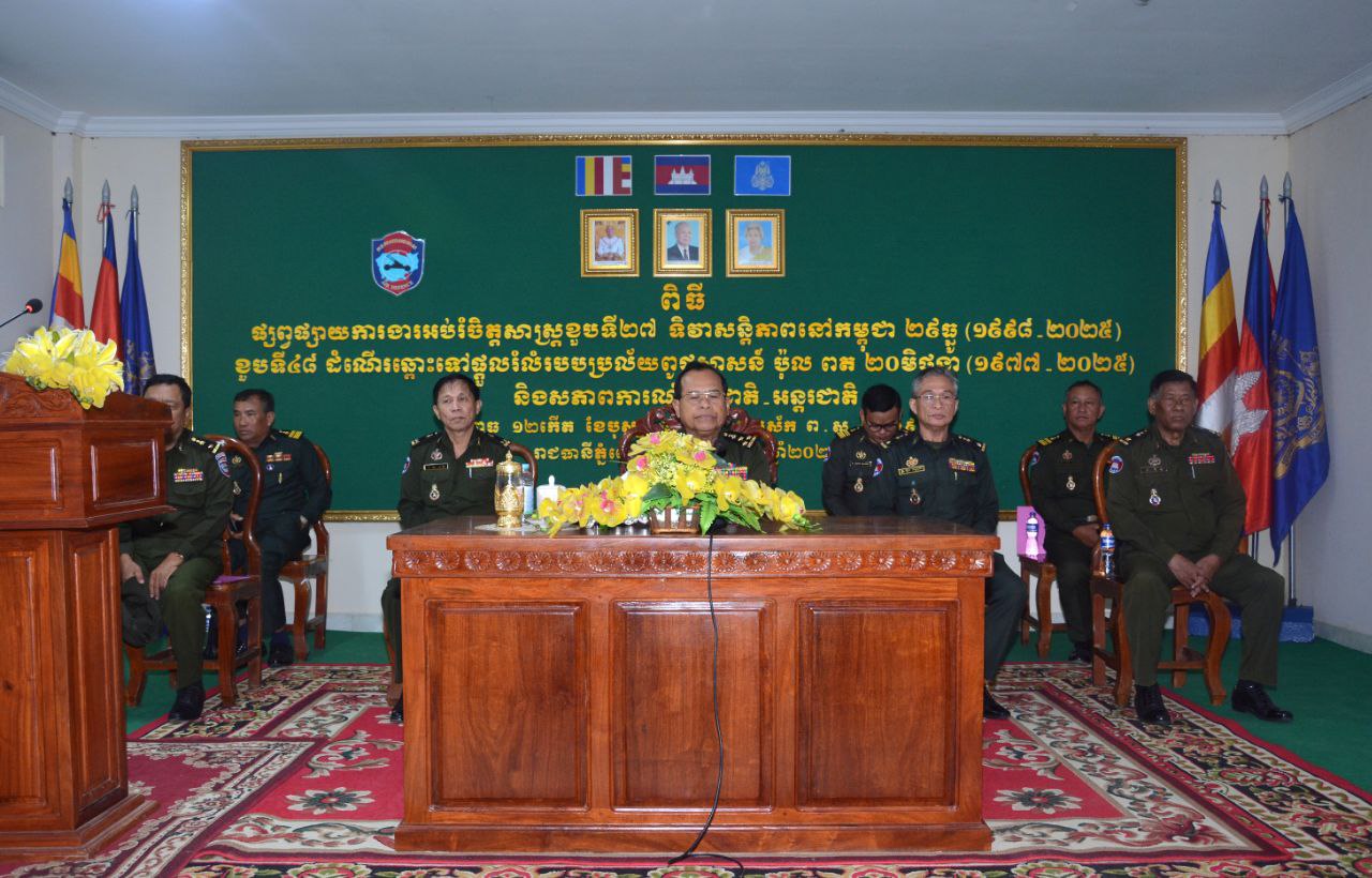 (ភ្នំពេញ)៖ ឯកឧត្តម ឧត្តមសេនីយ៍ឯក ខឹម សន នាយរងសេនាធិការចម្រុះ នាយកទីចាត់ការឃោសនាព័ត៌មាន អគ្គបញ្ជាការ បានអញ្ជើញផ្សព្វផ្សាយការងារអប់រំចិត្តសាស្ត្រ សភាពការណ៍ ជាតិ-អន្តរជាតិថ្មីៗ, ខួបទី៤៨ ទិវានៃការចងចាំដំណើរឆ្ពោះទៅកាន់ការផ្ដួលរំលំរបបប្រល័យពូជសាសន៍ ប៉ុល ពត (២០ មិថុនា ១៩៧៧ – ២០ មិថុនា ២០២៥) និងខួប២៧ឆ្នាំទិវាសន្តិភាពនៅកម្ពុជា (២៩ ធ្នូ ១៩៩៨ – ២៩ ធ្នូ ២០២៥) ដល់នាយទាហាន នាយទាហានរង បញ្ជាការដ្ឋានការពារអាកាស អគ្គបញ្ជាការ នាព្រឹកថ្ងៃទី ៣១ខែធ្នូ ឆ្នាំ២០២៥។