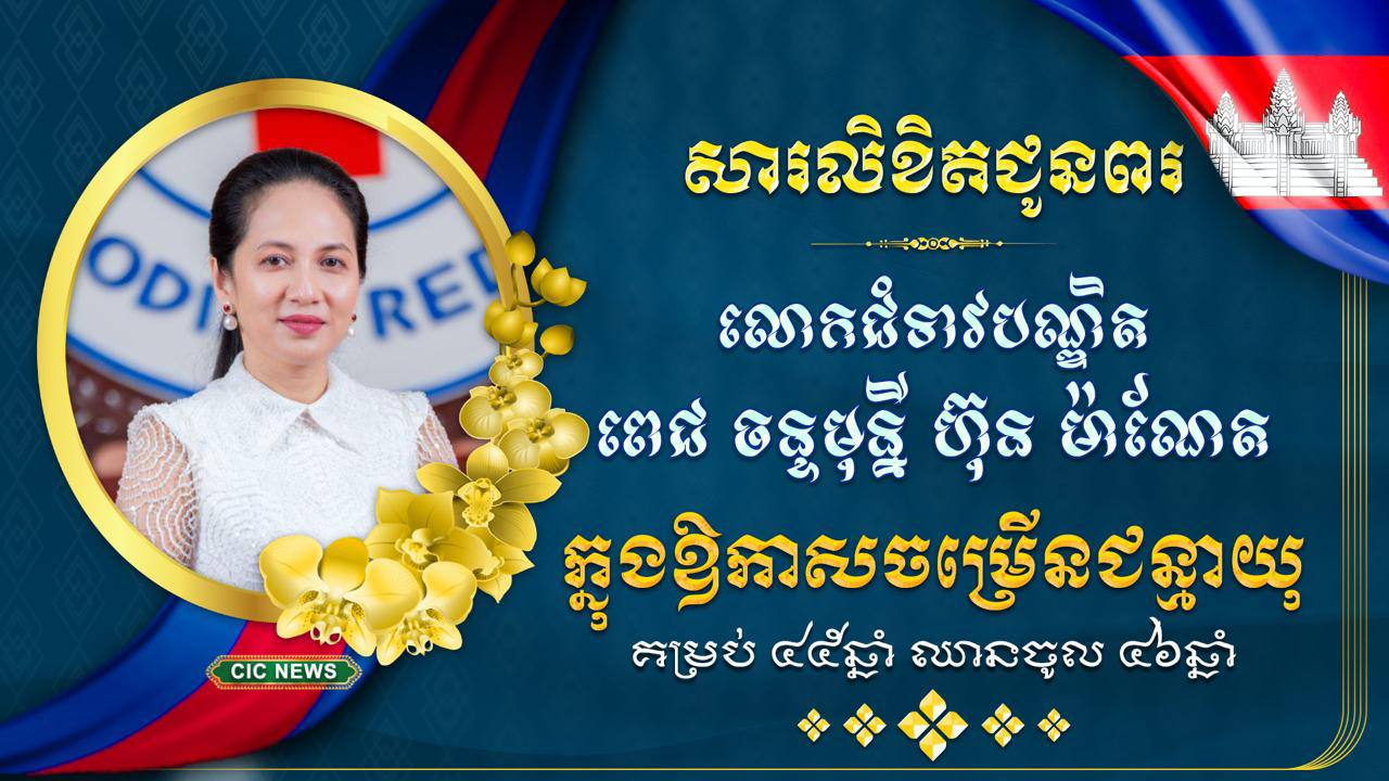 ឯកឧត្ដម នាយឧត្ដមសេនីយ៍ វង្ស ពិសេន ផ្ញើសារលិខិតគោរពជូនពរ លោកជំទាវបណ្ឌិត ពេជ ចន្ទមុន្នី ហ៊ុន ម៉ាណែត ក្នុងឱកាសចម្រើនជន្មាយុ