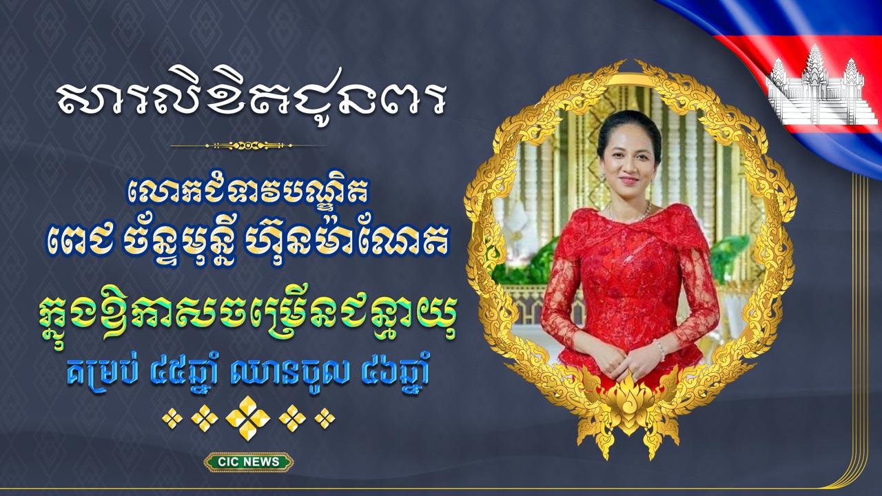 ជាថ្មីម្តងទៀតយើងខ្ញុំទាំងអស់គ្នា សូមលើកហត្ថបួងសួងដល់គុណបុណ្យព្រះរតនត្រ័យ គុណកែវទាំងបី ឫទ្ធិបារមីខ្លាំងក្លា វត្ថុស័ក្តិសិទ្ធិទាំងឡាយក្នុងលោក សូមមេត្តាតាមជួយអភិបាល គាំពារ ថែរក្សា លោកជំទាវបណ្ឌិត និងសម្តេចមហាបវរធិបតី ព្រមទាំងក្រុមគ្រួសារ សូមសមប្រកបតែនឹងពុទ្ធពរទាំងបួនប្រការគឺ អាយុ វណ្ណៈ សុខៈ ពលៈ ជានិច្ចនិរន្តរ៍៕