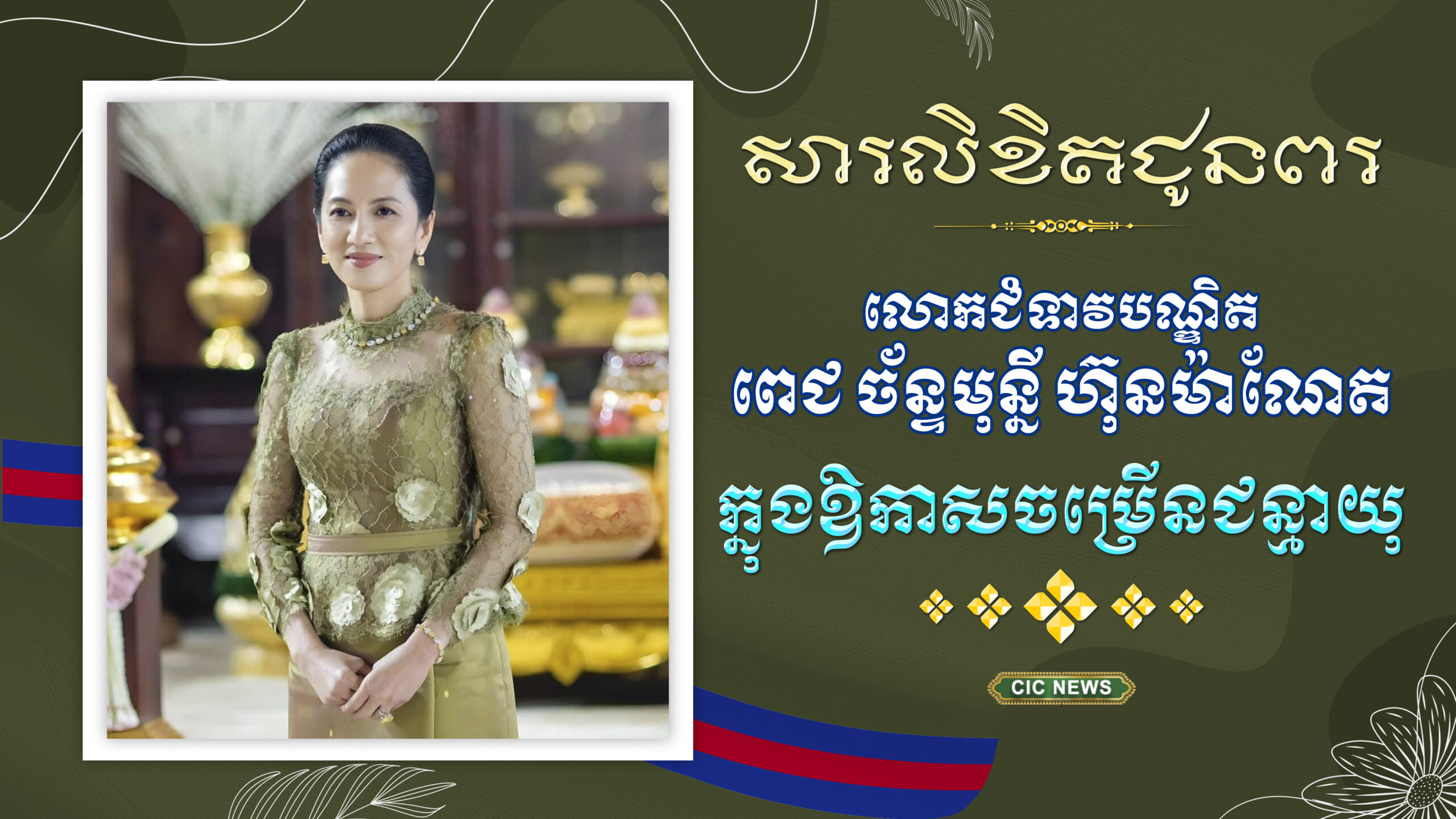 ជាថ្មីម្តងទៀតយើងខ្ញុំទាំងអស់គ្នា សូមលើកហត្ថបួងសួងដល់គុណបុណ្យព្រះរតនត្រ័យ គុណកែវទាំងបី ឫទ្ធិបារមីខ្លាំងក្លា វត្ថុស័ក្តិសិទ្ធិទាំងឡាយក្នុងលោក សូមមេត្តាតាមជួយអភិបាល គាំពារ ថែរក្សា លោកជំទាវបណ្ឌិត និងសម្តេចមហាបវរធិបតី ព្រមទាំងក្រុមគ្រួសារ សូមសមប្រកបតែនឹងពុទ្ធពរទាំងបួនប្រការគឺ អាយុ វណ្ណៈ សុខៈ ពលៈ ជានិច្ចនិរន្តរ៍៕