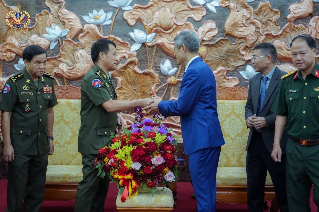 (ភ្នំពេញ)៖ នៅព្រឹកថ្ងៃទី៩ ខែកុម្ភៈ ឆ្នាំ២០២៦ ឯកឧត្ដម នាយឧត្តមសេនីយ៍ វង្ស ពិសេន អគ្គមេបញ្ជាការនៃកងយោធពលខេមរភូមិន្ទ បានដឹកនាំប្រតិភូជូនពរ ឯកឧត្តម ង្វៀន មិញ វុ ឯកអគ្គរដ្ឋទូតវិសាមញ្ញ និងពេញសមត្ថភាព និងលោកវរសេនីយ៍ឯកពិសេស ជិន វន់ តឹម ប្រធានការិយាល័យអនុព័ន្ធយោធាសាធារណរដ្ឋសង្គមនិយមវៀតណាមប្រចាំកម្ពុជា ក្នុងឱកាសត្រៀមស្វាគមន៍ឆ្នាំថ្មីប្រពៃណីវៀតណាមដែលនឹងចូលមកដល់នៅថ្ងៃទី១៧ កុម្ភៈ ខាងមុខនេះ៕