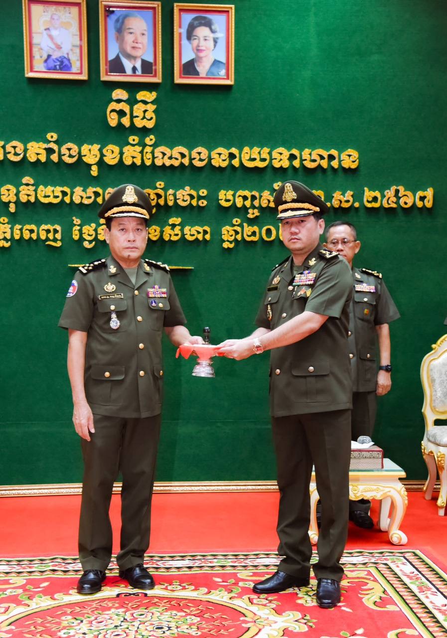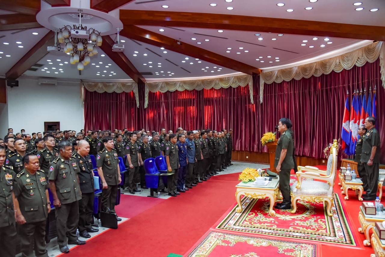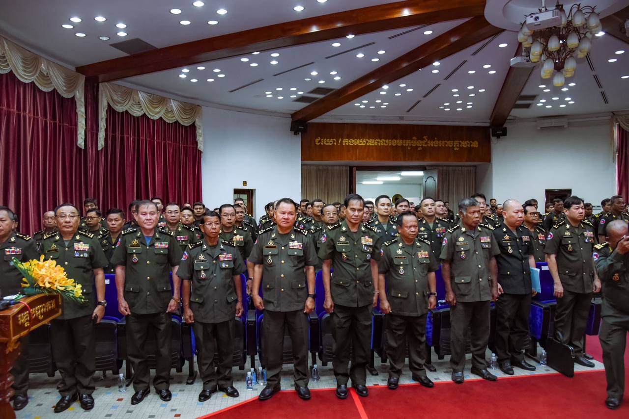 (ភ្នំពេញ)៖ ព្រឹកថ្ងៃទី០៩ ខែសីហា ឆ្នាំ២០២៣ ឯកឧត្តម នាយឧត្តមសេនីយ៍ វង្ស ពិសេន អគ្គមេបញ្ជាការនៃកងយោធពលខេមរភូមិន្ទ បានអញ្ជើញជាអធិបតីភាពក្នុងពិធីប្រកាសតែងតាំងមុខតំណែងនាយទាហាន នៅអគ្គបញ្ជាការដ្ឋាន។