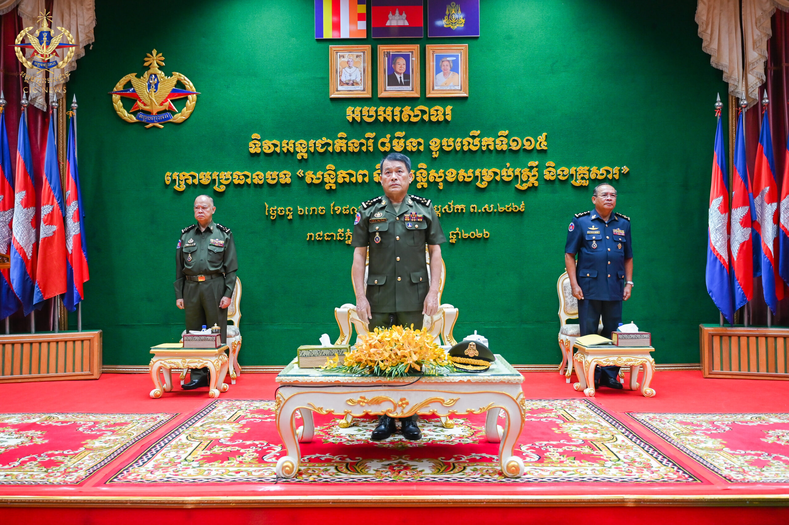 (ភ្នំពេញ)៖ ឯកឧត្តម នាយឧត្តមសេនីយ៍ វង្ស ពិសេន អគ្គមេបញ្ជាការនៃកងយោធពលខេមរភូមិន្ទ បានវាយតម្លៃខ្ពស់ចំពោះយោធិននារីគ្រប់រូប ដែលកន្លងមកបានបំពេញបេសកកម្មប្រកបដោយភាពអំណត់ ព្យាយាម ពុះពារគ្រប់ឧបសគ្គ ដើម្បីរួមចំណែកក្នុងបុព្វហេតុការពារឯករាជ្យ សន្តិភាព បូរណភាពទឹកដី និងសេចក្តីសុខសាន្តរបស់ប្រជាជន។
