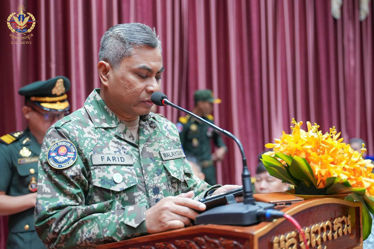 លោកវរសេនីយ៍ឯក MOHD FARID BIN MOHD YUSOP ប្រធានក្រុម (AOT) បានធ្វើរបាយការណ៍សកម្មភាពការងារ ដែលក្នុងរយៈពេលជិត៧ខែមកនេះ ក្រុម (AOT) បានប្តេជ្ញាចិត្តពេញទំហឹងនិងម៉ឺងម៉ាត់ ក្នុងការបំពេញភារកិច្ចរបស់ខ្លួន ដែលរួមមាន៖ ការតាមដានស្ថានភាពនៅទីតាំងជាក់ស្ដែង ការលើកកម្ពស់តម្លាភាព ការកសាងទំនុកចិត្តរវាងភាគីពាក់ព័ន្ធ និងគាំទ្រដល់កិច្ចខិតខំដើម្បីរក្សាស្ថិរភាព ទប់ស្កាត់ការកើនឡើងនូវភាពតានតឹង។