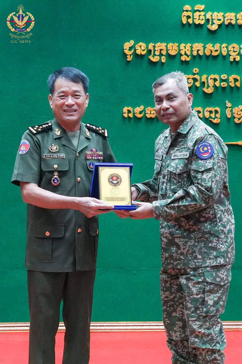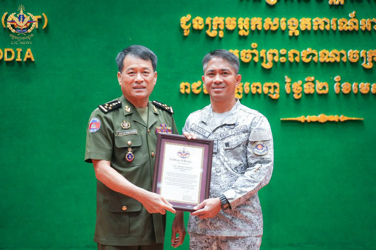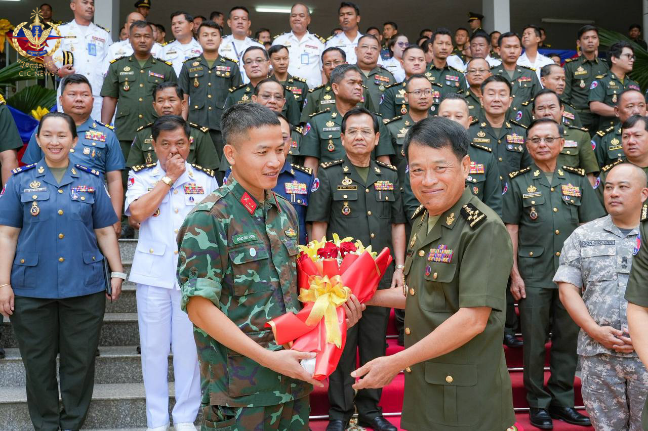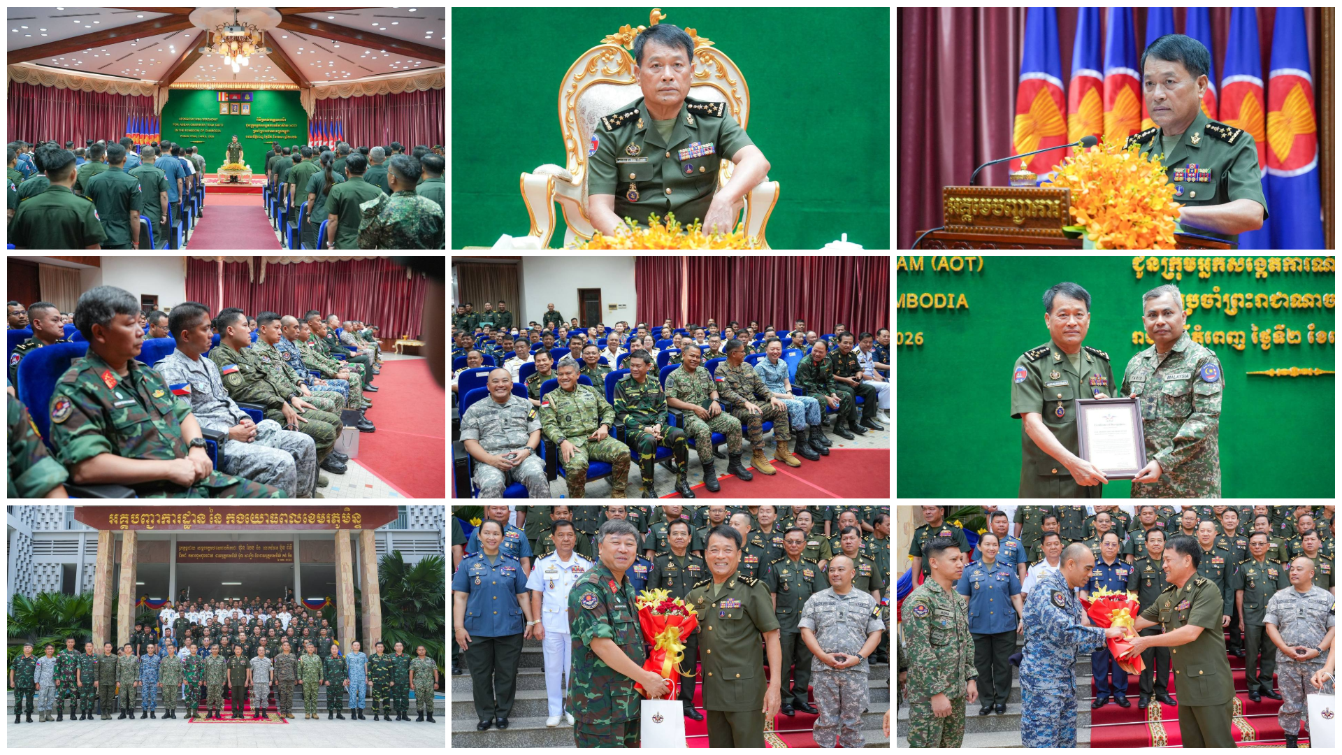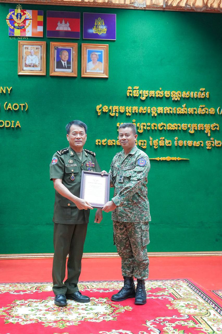 (ភ្នំពេញ)៖ នៅព្រឹកថ្ងៃទី០២ ខែមេសា ឆ្នាំ២០២៦ ឯកឧត្តម នាយឧត្តមសេនីយ៍ វង្ស ពិសេន អគ្គមេបញ្ជាការ នៃកងយោធពលខេមរភូមិន្ទ បានអញ្ជើញជាអធិបតីក្នុងពិធីសំណេះសំណាល និងប្រគល់ប័ណ្ណសរសើរជូនក្រុមអ្នកសង្កេតការអាស៊ាន (AOT) ប្រចាំព្រះរាជាណាចក្រកម្ពុជា។