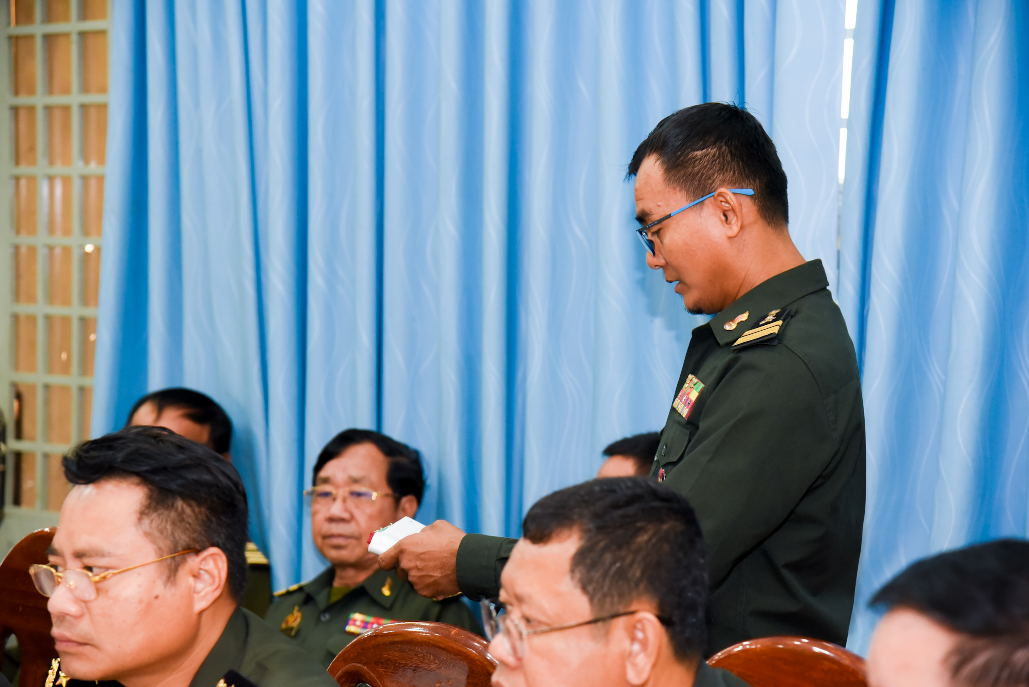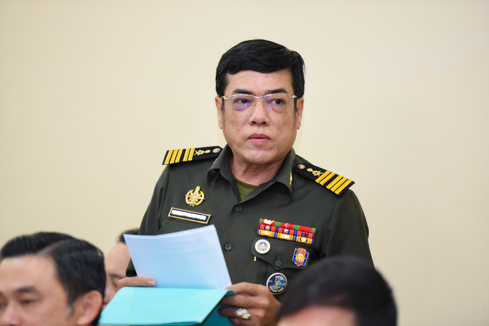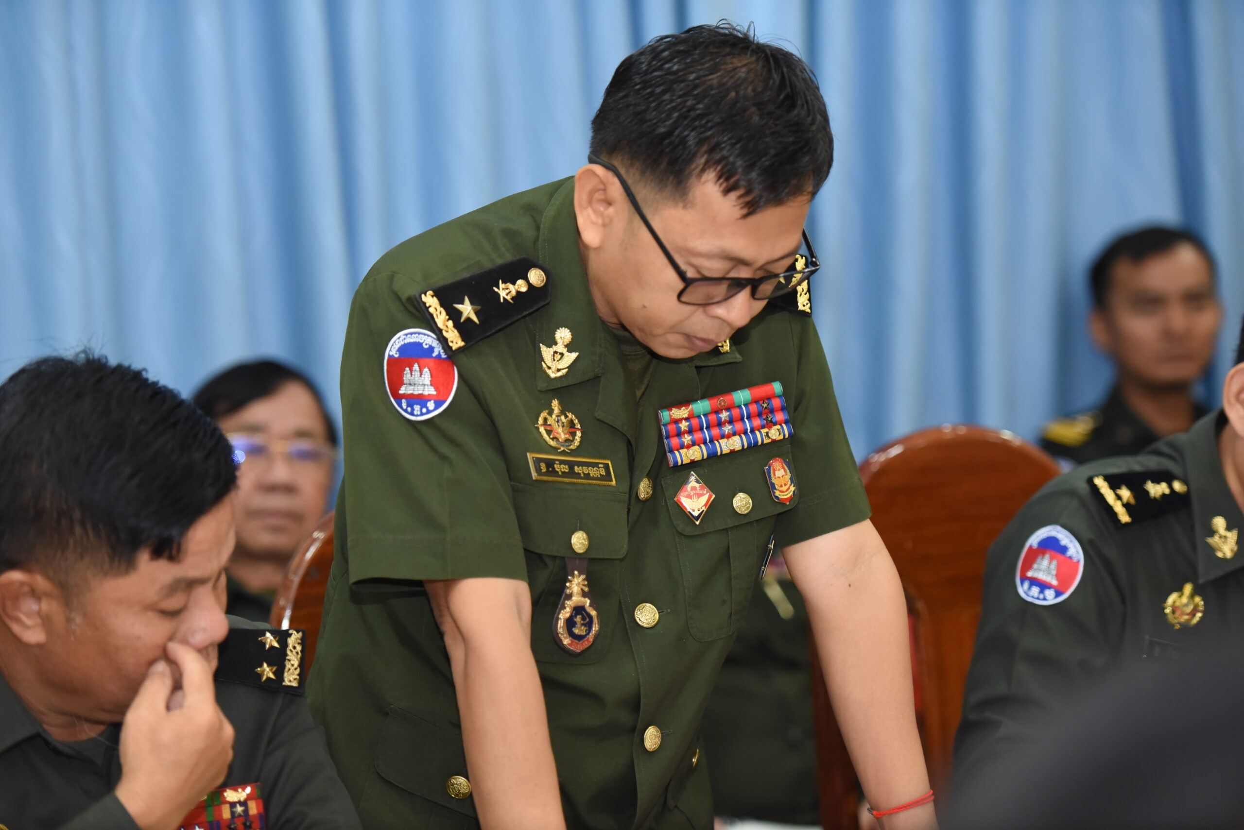 (ភ្នំពេញ)៖ ដោយទទួលបានការអនុញ្ញាតដ៏ខ្ពង់ខ្ពស់ពី ឯកឧត្ដម នាយឧត្ដមសេនីយ៍ វង្ស ពិសេន អគ្គមេបញ្ជាការនៃកងយោធពលខេមរភូមិន្ទ ឧត្ដមសេនីយ៍ឯក ហួត ឈាងអន នាយរងសេនាធិការចម្រុះនៃកងយោធពលខេមរភូមិន្ទ និងជានាយកទីចាត់ការចលនូប្បត្ថម្ភ អគ្គបញ្ជាការ បានអញ្ជើញជាអធិបតីដឹកនាំកិច្ចប្រជុំត្រួតពិនិត្យការងារផ្ទៃក្នុងរបស់ទីចាត់ការ។