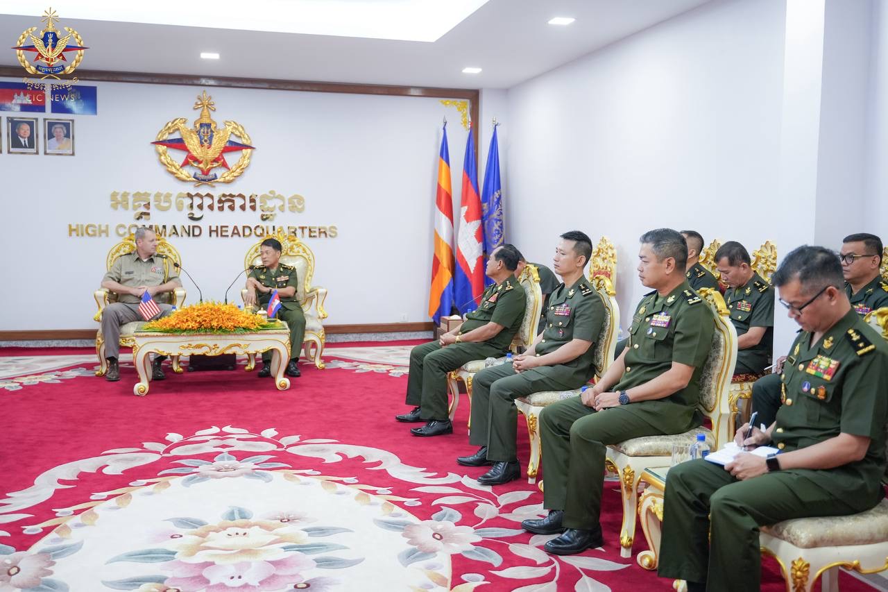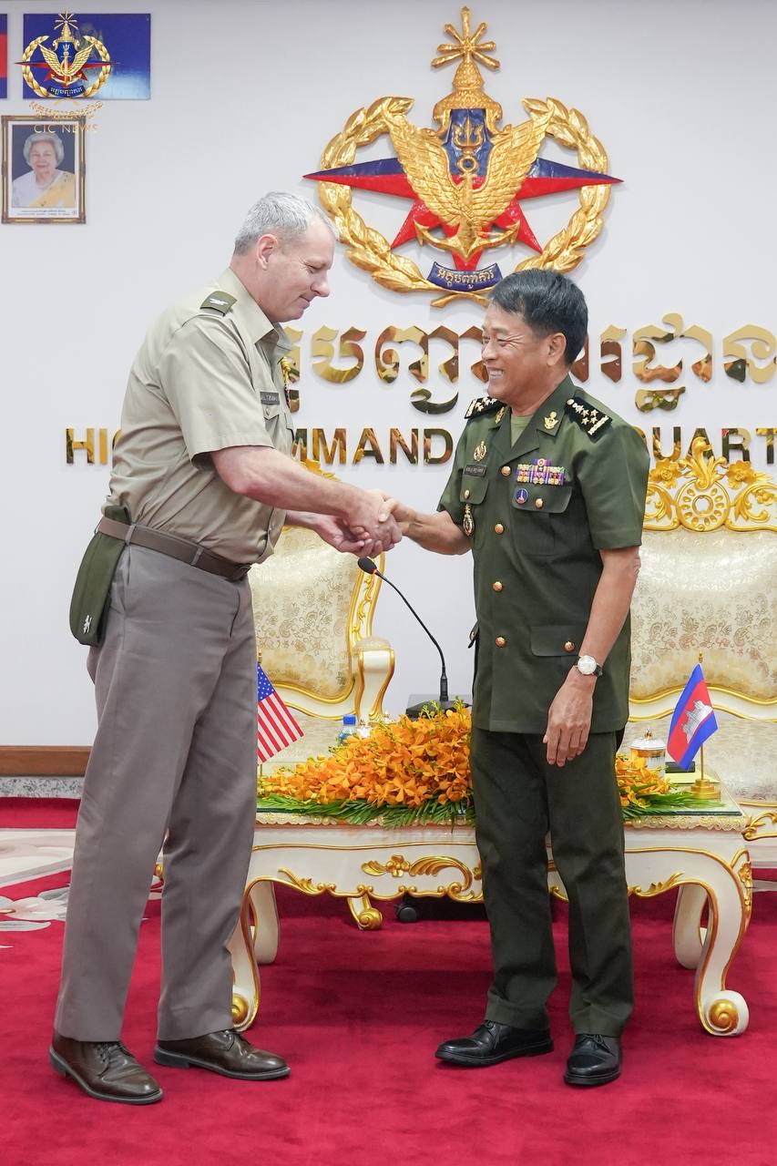 (ភ្នំពេញ)៖ លោកវរសេនីយ៍ឯក ខាល សលមែន (Kyle Saltzman) នាយការិយាល័យឣនុព័ន្ធយោធាសហរដ្ឋឣាមេរិកប្រចាំកម្ពុជា បានចូលជួបសម្តែងការគួរសម និងជូនពរឆ្នាំថ្មី ដល់ឯកឧត្តម នាយឧត្តមសេនីយ៍ វង្ស ពិសេន អគ្គមេបញ្ជាការ នៃកងយោធពលខេមរភូមិន្ទ នាព្រឹកថ្ងៃទី០៣ ខែមេសា ឆ្នាំ២០២៦។