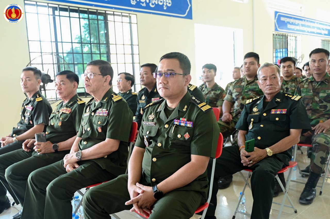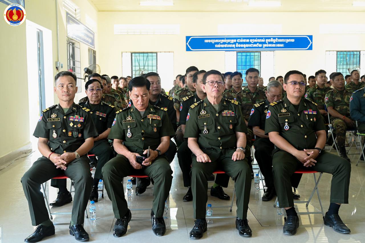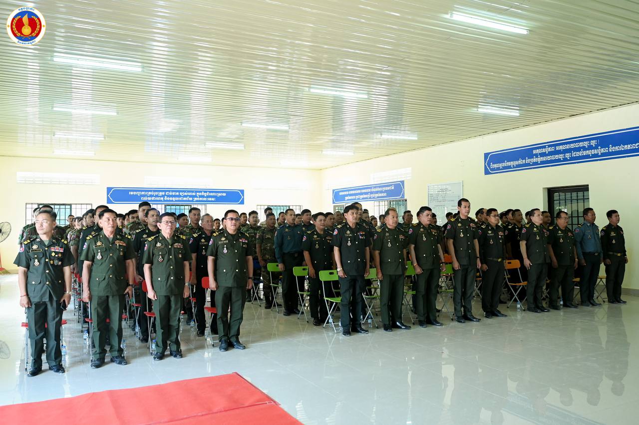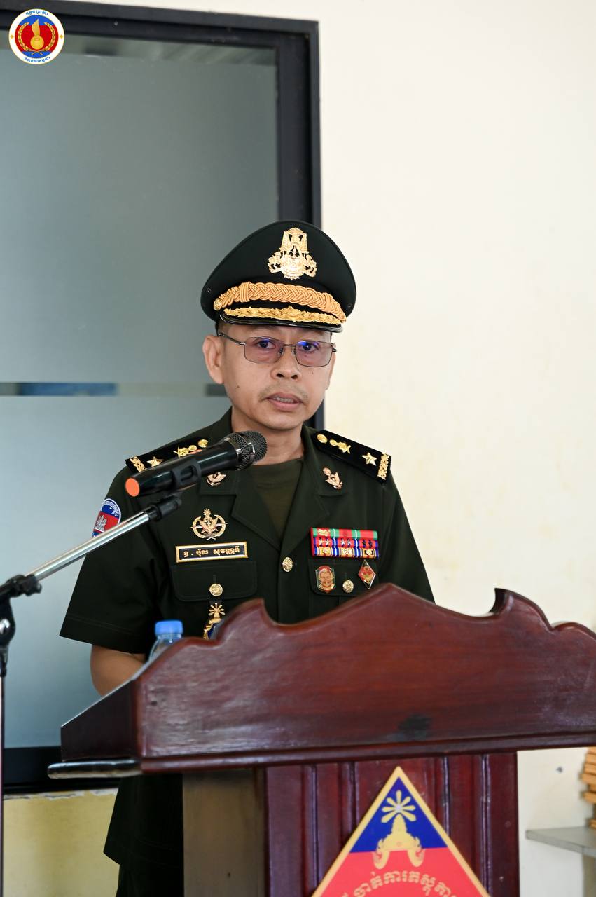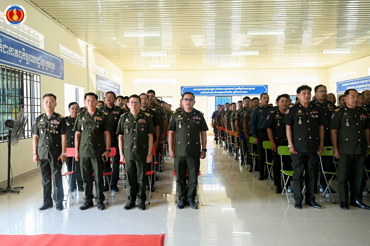 (ព្រៃវែង)៖ ឧត្តមសេនីយ៍ឯក ហួត ឈាងអន នាយរងសេនាធិការចម្រុះ នាយកទីចាត់ការភស្តុភារ អគ្គបញ្ជាការ តំណាងដ៏ខ្ពង់ខ្ពស់ ឯកឧត្ដម នាយឧត្ដមសេនីយ៍ វង្ស ពិសេន អគ្គមេបញ្ជាការនៃកងយោធពលខេមរភូមិន្ទ បានអញ្ជើញជាអធិបតីក្នុងពិធីបិទវគ្គហ្វឹកហ្វឺនបណ្តុះបណ្តាលជំនាញភស្តុភារ ថ្នាក់កងពលតូច តំបន់ប្រតិបត្តិការសឹករង និងថ្នាក់ប្រហាក់ប្រហែល ជំនាន់ទី១ ឆ្នាំ២០២៥ នៅសាលាភស្តុភារ និងដឹកជញ្ជូន (ភ្នំឈើកាច់)។