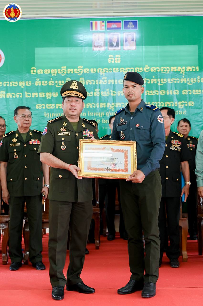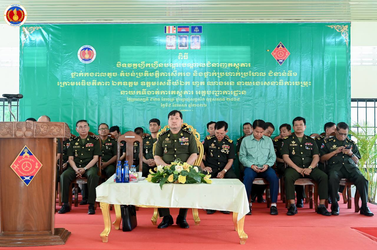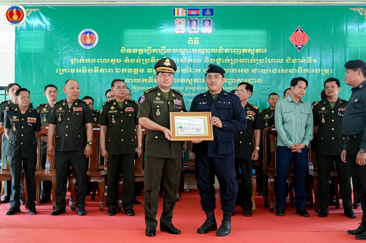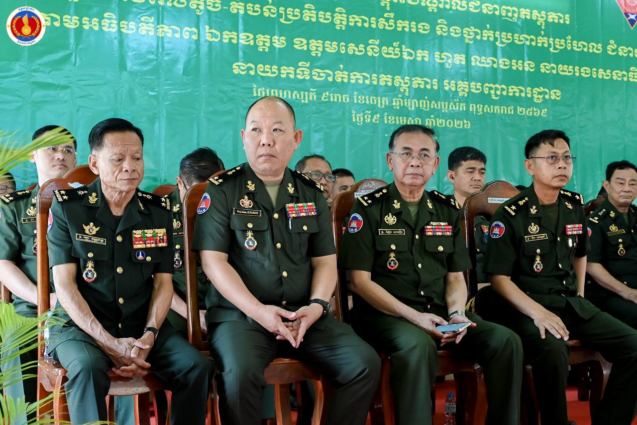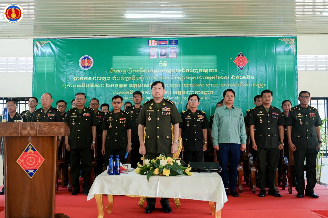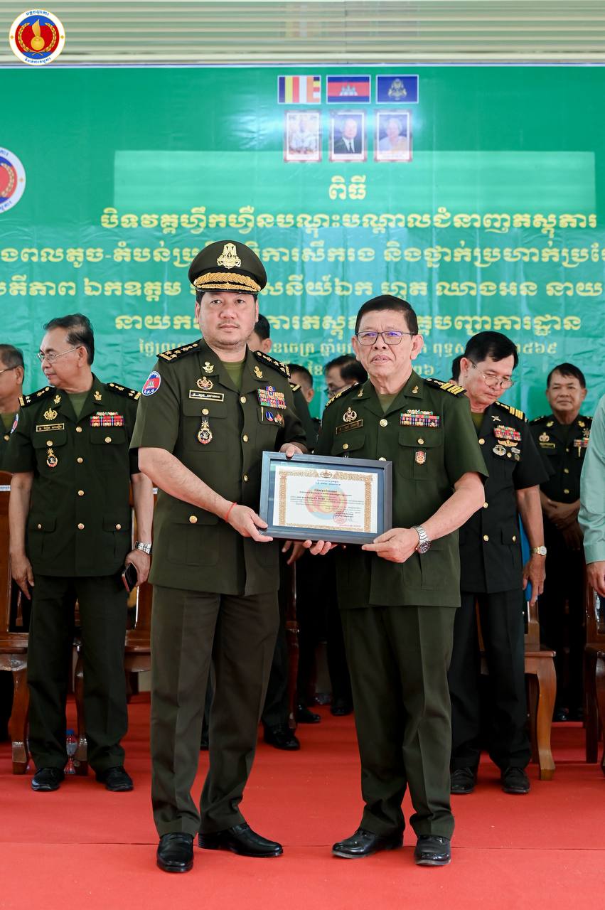 (ព្រៃវែង)៖ ឧត្តមសេនីយ៍ឯក ហួត ឈាងអន នាយរងសេនាធិការចម្រុះ នាយកទីចាត់ការភស្តុភារ អគ្គបញ្ជាការ តំណាងដ៏ខ្ពង់ខ្ពស់ ឯកឧត្ដម នាយឧត្ដមសេនីយ៍ វង្ស ពិសេន អគ្គមេបញ្ជាការនៃកងយោធពលខេមរភូមិន្ទ បានអញ្ជើញជាអធិបតីក្នុងពិធីបិទវគ្គហ្វឹកហ្វឺនបណ្តុះបណ្តាលជំនាញភស្តុភារ ថ្នាក់កងពលតូច តំបន់ប្រតិបត្តិការសឹករង និងថ្នាក់ប្រហាក់ប្រហែល ជំនាន់ទី១ ឆ្នាំ២០២៥ នៅសាលាភស្តុភារ និងដឹកជញ្ជូន (ភ្នំឈើកាច់)។