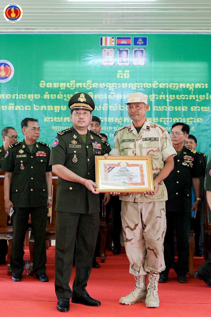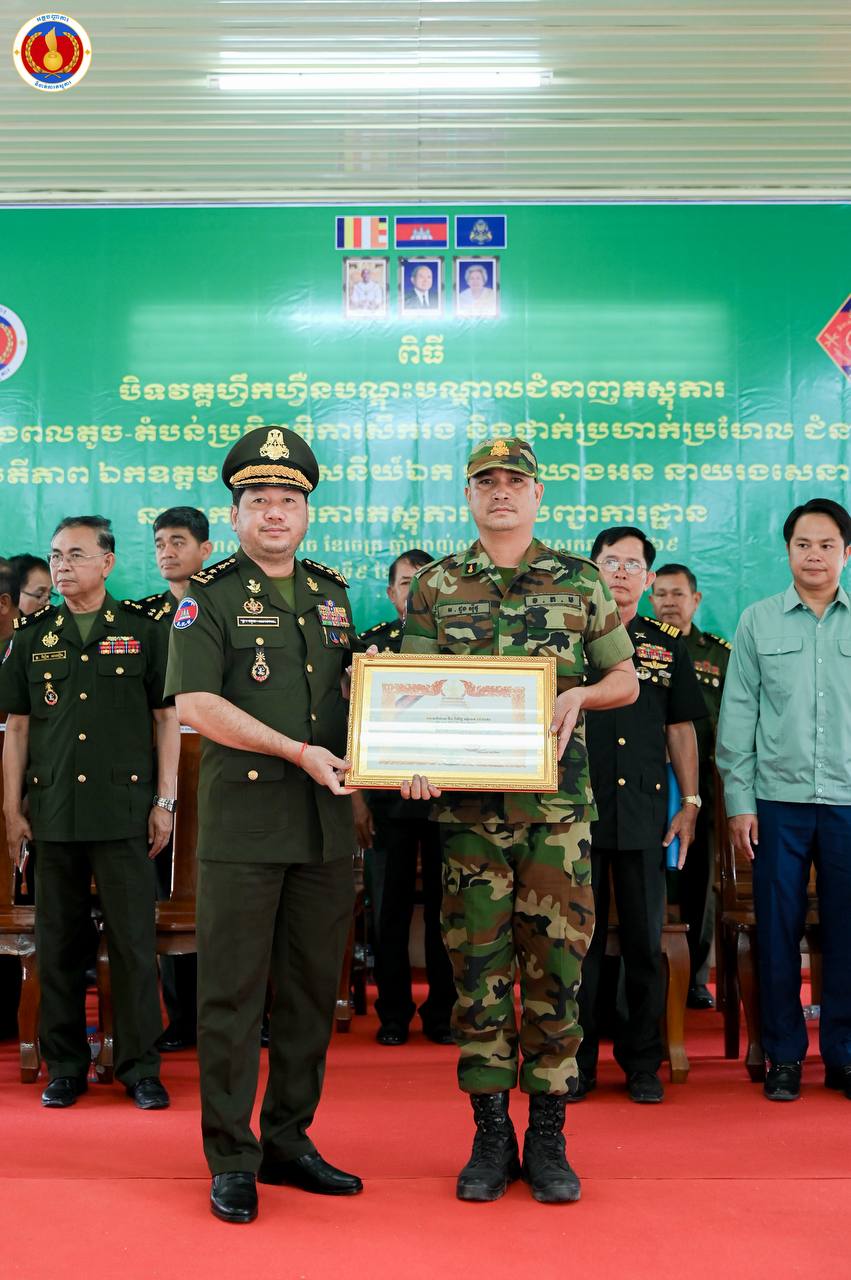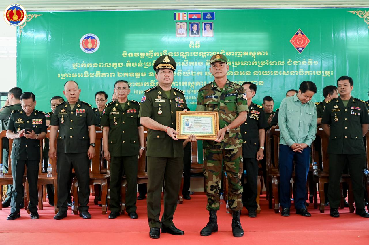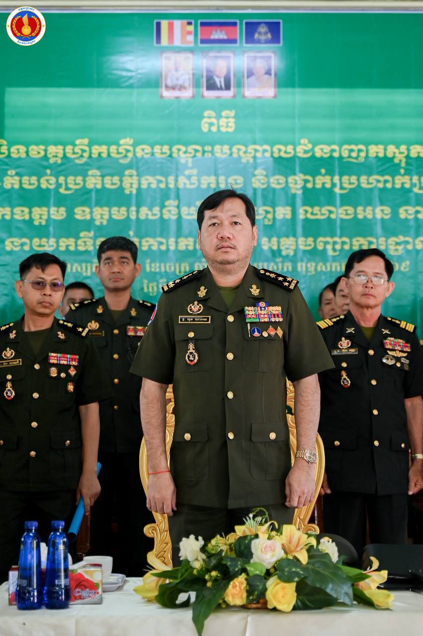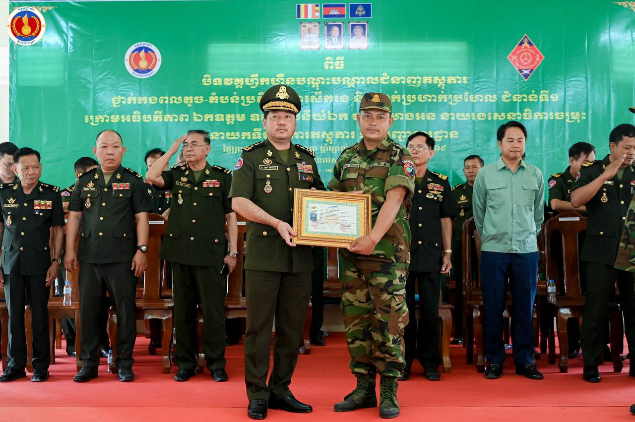 (ព្រៃវែង)៖ ឧត្តមសេនីយ៍ឯក ហួត ឈាងអន នាយរងសេនាធិការចម្រុះ នាយកទីចាត់ការភស្តុភារ អគ្គបញ្ជាការ តំណាងដ៏ខ្ពង់ខ្ពស់ ឯកឧត្ដម នាយឧត្ដមសេនីយ៍ វង្ស ពិសេន អគ្គមេបញ្ជាការនៃកងយោធពលខេមរភូមិន្ទ បានអញ្ជើញជាអធិបតីក្នុងពិធីបិទវគ្គហ្វឹកហ្វឺនបណ្តុះបណ្តាលជំនាញភស្តុភារ ថ្នាក់កងពលតូច តំបន់ប្រតិបត្តិការសឹករង និងថ្នាក់ប្រហាក់ប្រហែល ជំនាន់ទី១ ឆ្នាំ២០២៥ នៅសាលាភស្តុភារ និងដឹកជញ្ជូន (ភ្នំឈើកាច់)។