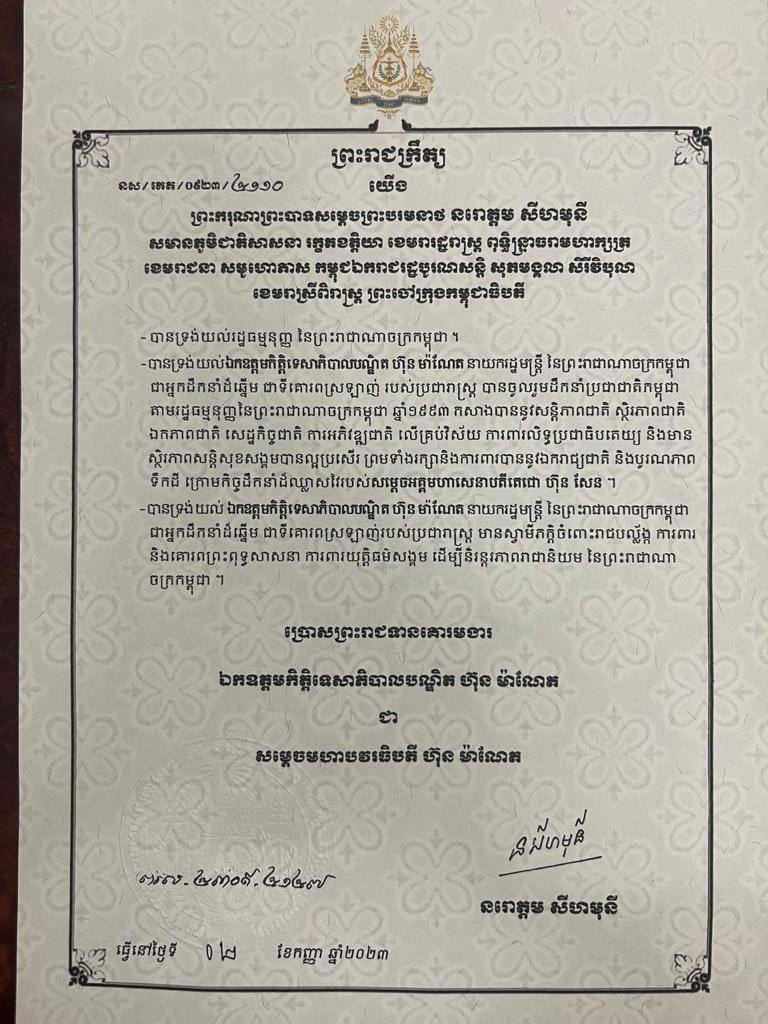នាយករដ្ឋមន្រ្តី ហ៊ុន ម៉ាណែត ពិតជាស័ក្តិសមបំផុត ចំពោះការទទួលបាននូវគោរមងារដ៏ឧត្តុង្គឧត្តមខ្ពង់ខ្ពស់បំផុត ជា «សម្តេចមហាបវរធិបតី» ហើយការផ្តល់គោរមងារនេះពិតជាស័ក្តិសមបំផុតសម្រាប់មុខតំណែងដ៏ខ្ពស់បំផុត ក្នុងប្រទេសកម្ពុជាដែលប្រកាន់យករបបរាជានិយម អាស្រ័យដោយរដ្ឋធម្មនុញ្ញ ហើយគោរមងារនេះ ពិតស័ក្តិសមបំផុតចំពោះសម្តេច ដែលជាប្រមុខរាជរដ្ឋាភិបាល ពោរពេញទៅដោយសមត្ថភាពដ៏ខ្ពង់ខ្ពស់ ចំណេះដឹងដ៏ជ្រៅជ្រះ និងទេពកោសល្យដ៏ប៉ិនប្រសប់ប្រកបដោយគតិបណ្ឌិតដ៏ខ្ពង់ខ្ពស់។