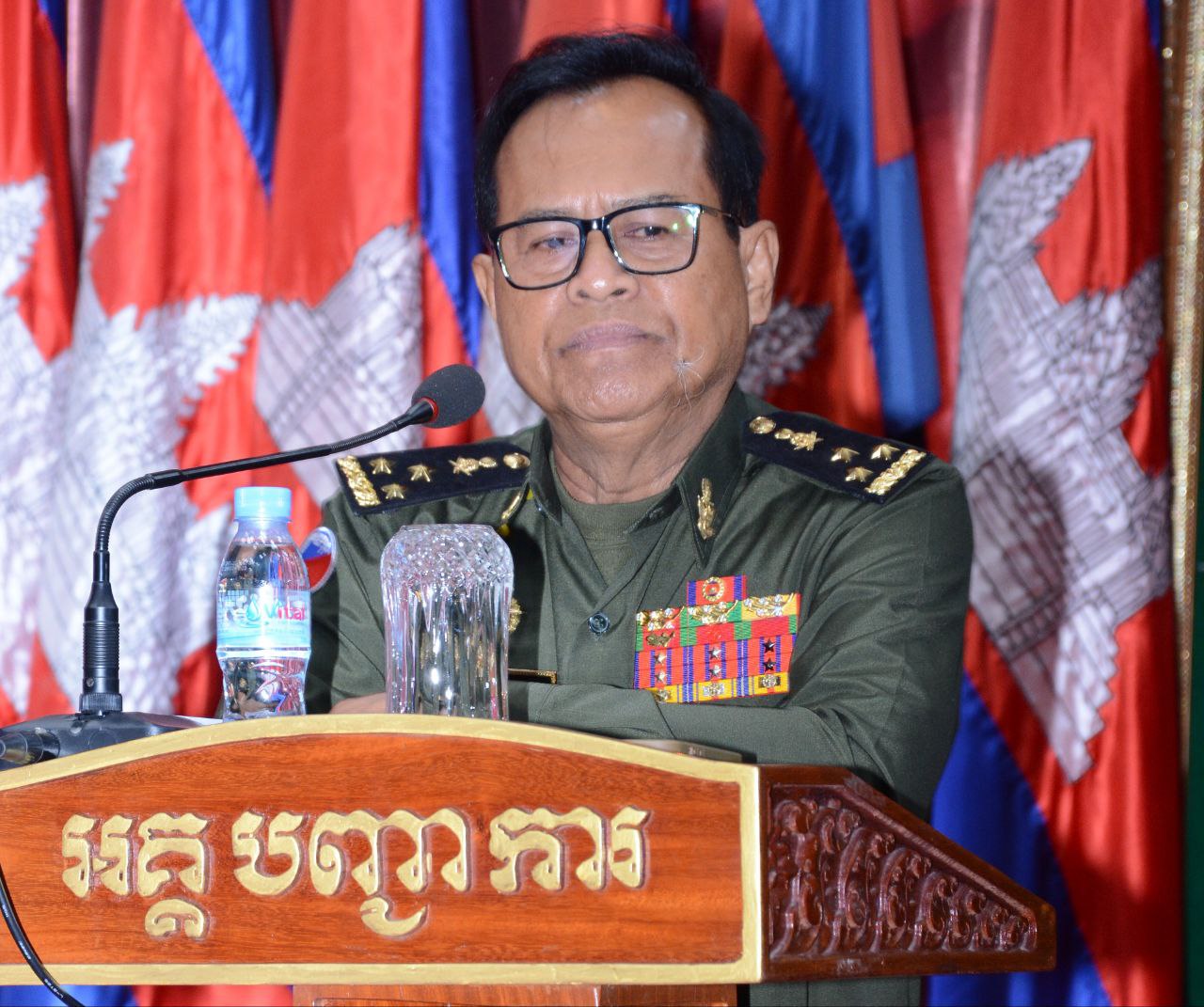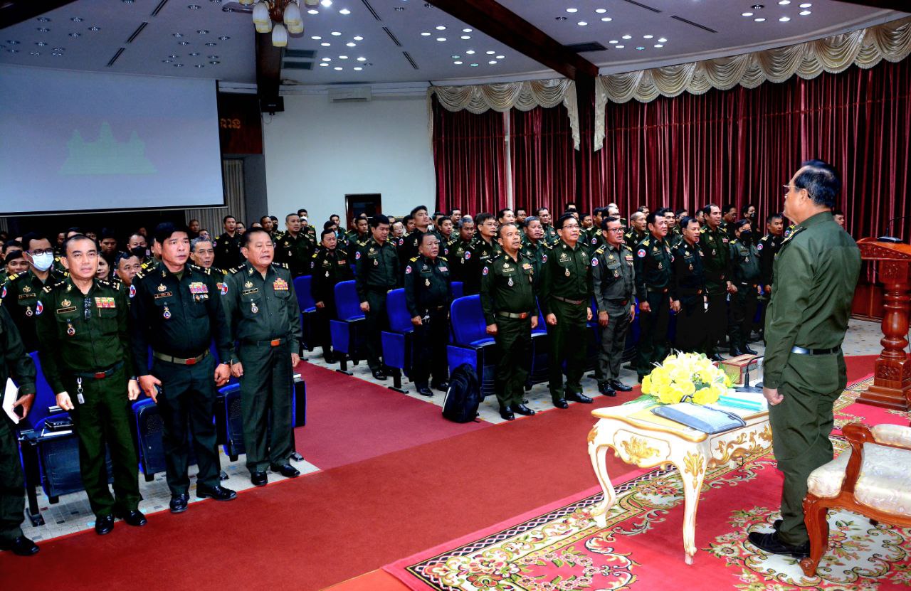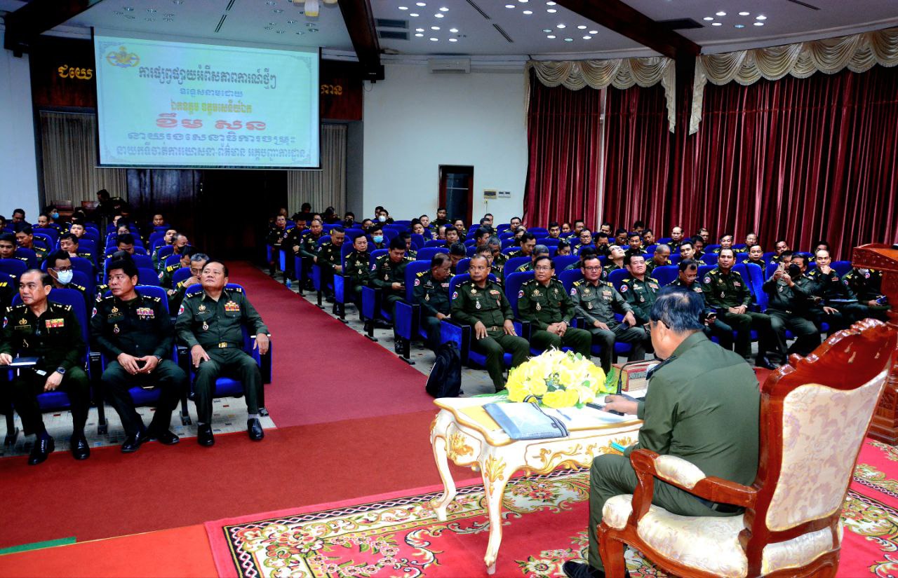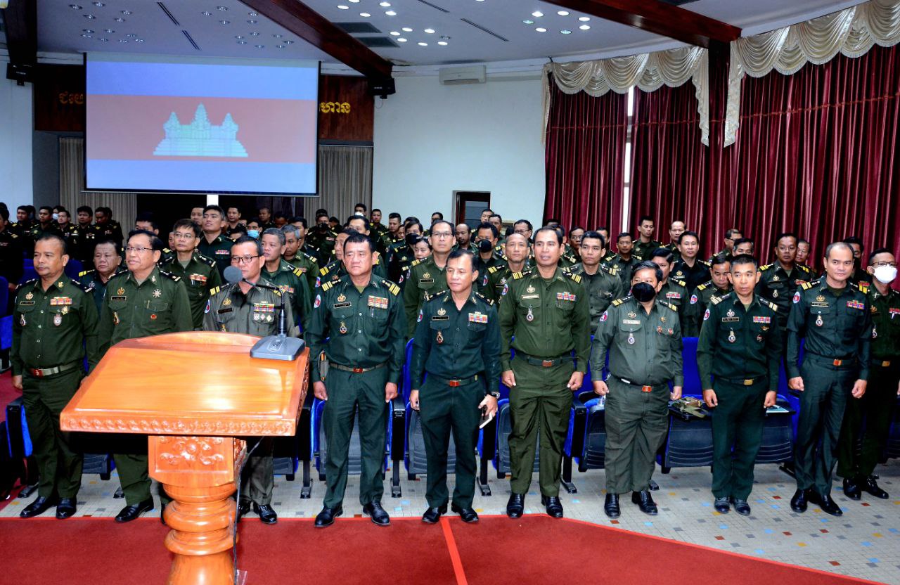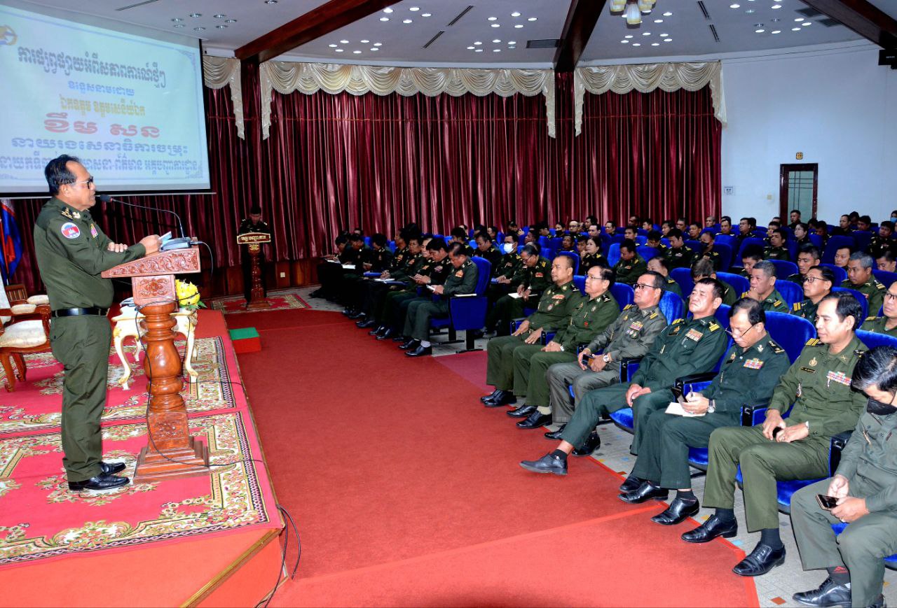 (ភ្នំពេញ) ឯកឧត្ដម ឧត្ដមសេនីយ៍ឯក ខឹម សន នាយរងសេនាធិការចម្រុះ នាយកទីចាត់ការឃោសនាព័ត៌មាន អគ្គបញ្ជាការដ្ឋាន អញ្ជើញជាអធិបតីក្នុងពិធីអប់រំផ្សព្វផ្សាយយុទ្ធសាស្ត្របញ្ចកោណដំណាក់កាលទី១ និងកម្មវិធីនយោបាយរាជរដ្ឋាភិបាលនីតិកាលទី៧ នៃរដ្ឋសភាសម្រាប់ការកសាងនិងការពារជាតិមាតុភូមិ ឆ្នាំ២០២៣-២០២៨ ជូននាយទាហាន នាយទាហានរង និងពលទាហាននៃទីចាត់ការបុគ្គលិក អគ្គបញ្ជាការដ្ឋាន។