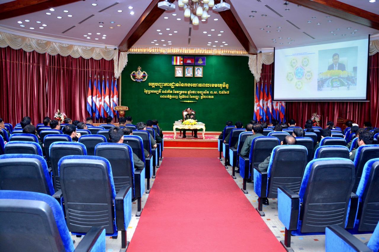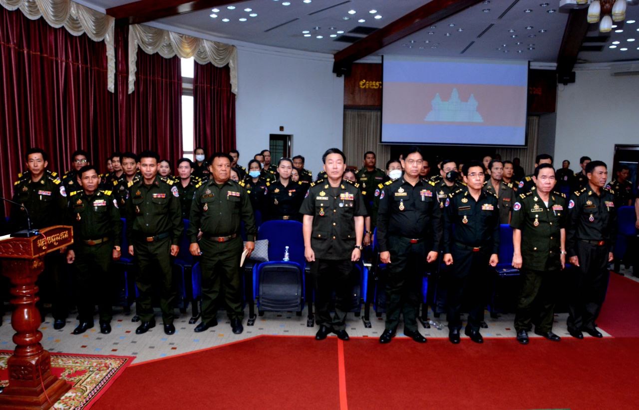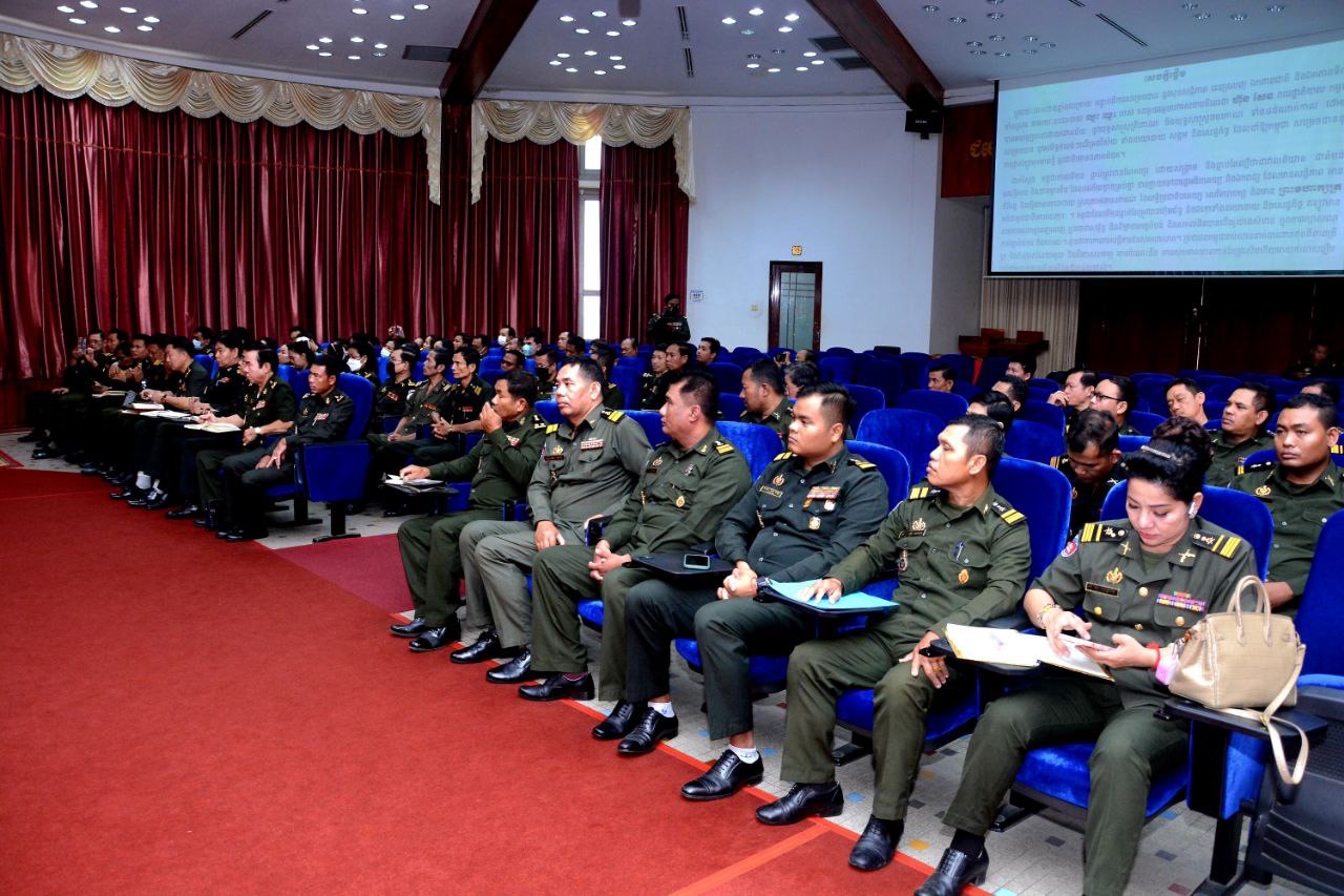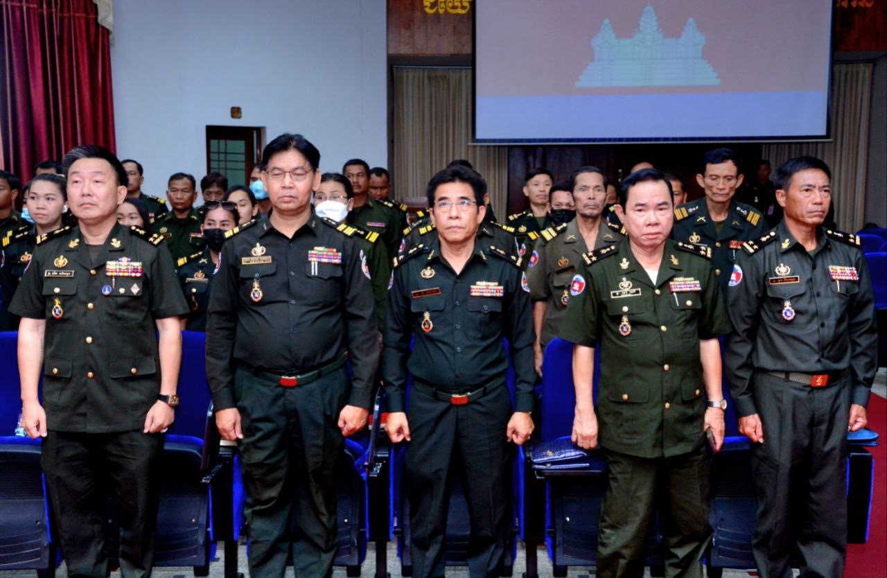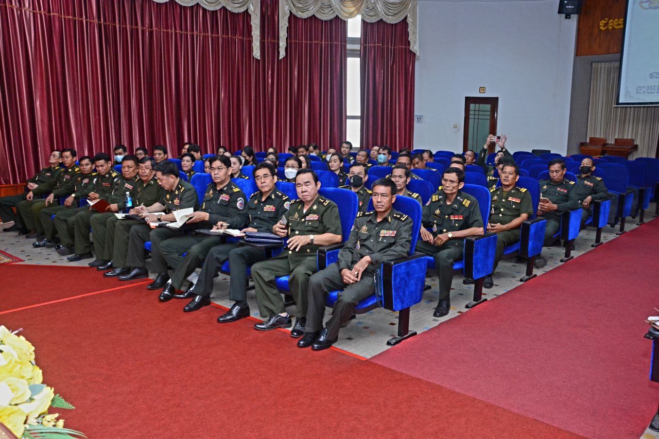 (ភ្នំពេញ) ឯកឧត្ដម ឧត្ដមសេនីយ៍ឯក ខឹម សន នាយរងសេនាធិការចម្រុះ នាយកទីចាត់ការឃោសនាព័ត៌មាន អគ្គបញ្ជាការដ្ឋាន អញ្ជើញជាអធិបតីក្នុងពិធីអប់រំផ្សព្វផ្សាយយុទ្ធសាស្ត្របញ្ចកោណដំណាក់កាលទី១ និងកម្មវិធីនយោបាយរាជរដ្ឋាភិបាលនីតិកាលទី៧ នៃរដ្ឋសភាសម្រាប់ការកសាងនិងការពារជាតិមាតុភូមិ ឆ្នាំ២០២៣-២០២៨ ជូននាយទាហាន នាយទាហានរង និងពលទាហាននៃទីចាត់ការហិរញវត្តុ និង ទីចាត់ការអភិវឌ្ឍន៍ អគ្គបញ្ជាការដ្ឋាន។