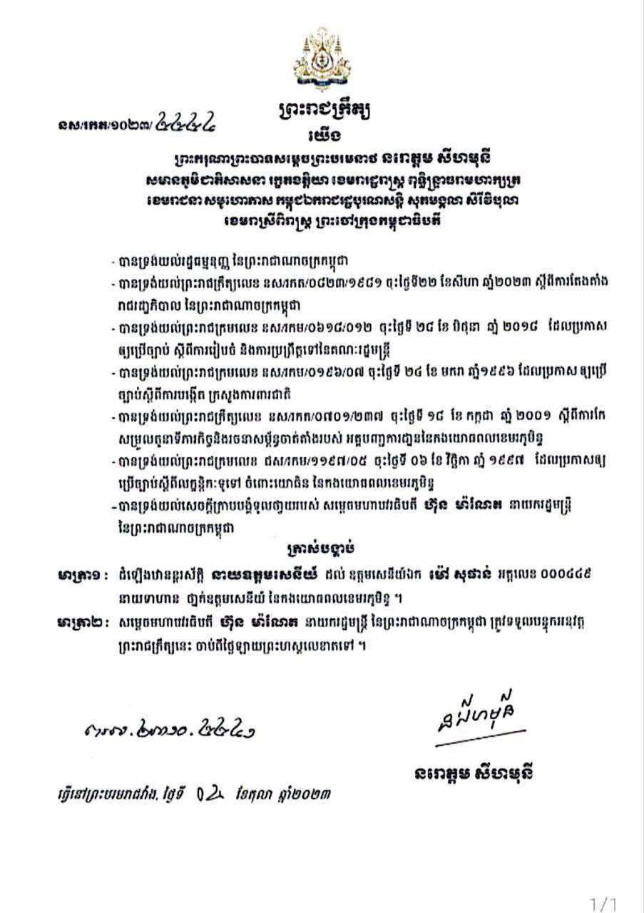 (ភ្នំពេញ)៖ ឧត្តមសេនីយ៍ឯក យ៉ាល់ ពិសិដ្ឋ នាយកទីចាត់ការបច្ចេកទេស អគ្គបញ្ជាការដ្ឋាន ព្រមទាំងនាយទាហាន នាយទាហានរង និងពលទាហានទាំងអស់ សូមផ្ញើសារជូនពរ និងសូមចូលរួមអបអរសាទរជូនចំពោះ ឯកឧត្តម ឧត្តមសេនីយ៍ឯក ម៉ៅ សុផាន់ អគ្គមេបញ្ជាការរងកងយោធពលខេមរភូមិន្ទ និងជាមេបញ្ជាការកងទ័ពជើងគោក ដែលត្រូវបានព្រះមហាក្សត្រចេញព្រះរាជក្រឹត្យត្រាស់បង្គាប់ដំឡើងឋានន្ដរស័ក្ដិថ្នាក់ «នាយឧត្តមសេនីយ៍»។