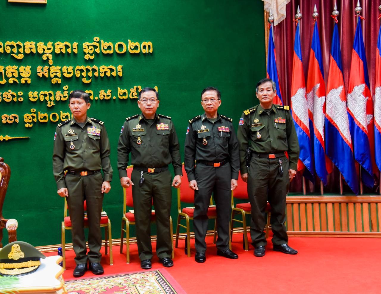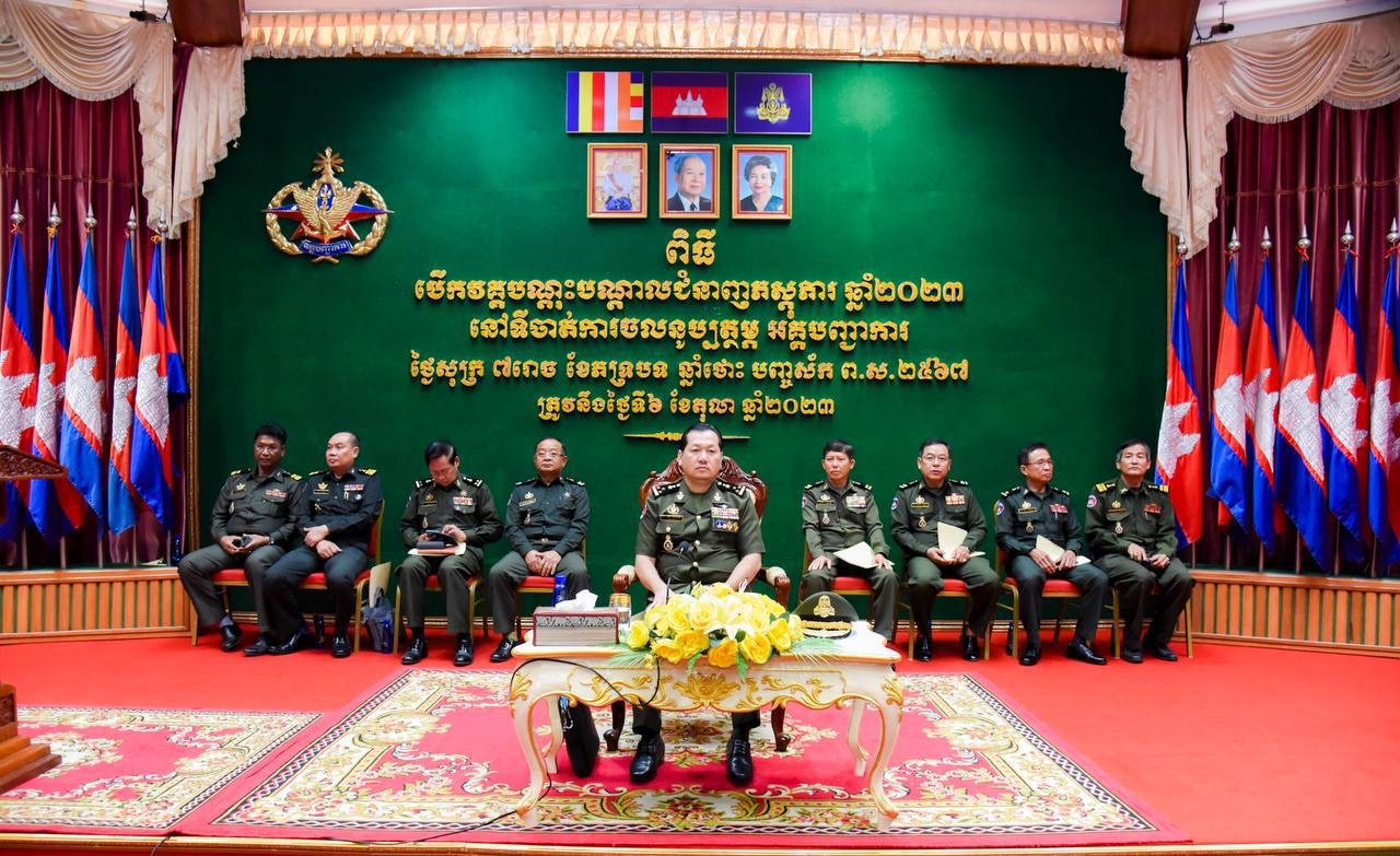 (ភ្នំពេញ)៖ ឧត្ដមសេនីយ៍ឯក ហួត ឈាងអន នាយរងសេនាធិការចម្រុះ នាយកទីចាត់ការចលនូប្បត្ថម្ភ អគ្គបញ្ជាការ តំណាងដ៏ខ្ពង់ខ្ពស់ ឯកឧត្ដម នាយឧត្ដមសេនីយ៍ អគ្គមេបញ្ជាការ កងយោធពលខេមរភូមិន្ទ នៅព្រឹកថ្ងៃទី៦ ខែតុលានេះ បានអញ្ជើញជាអធិបតីក្នុងពិធីបើកវគ្គហ្វឹកហ្វឺនបណ្ដុះបណ្ដាលជំនាញភស្តុភារ ឆ្នាំ២០២៣ របស់ទីចាត់ការចលនូប្បត្ថម្ភ។
