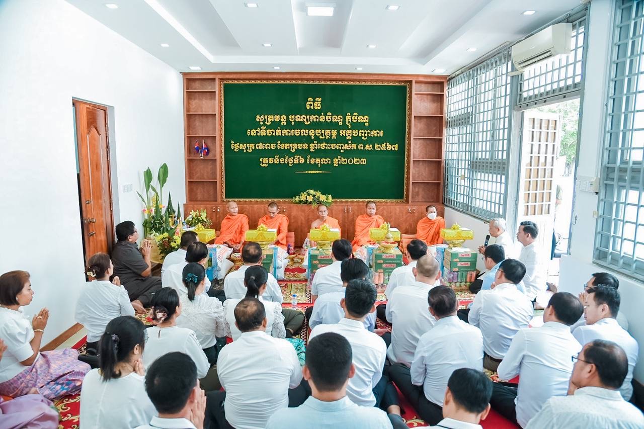 (ភ្នំពេញ)៖ នៅរសៀលថ្ងៃទី៦ ខែតុលា ឆ្នាំ២០២៣ ឯកឧត្ដម ឧត្ដមសេនីយ៍ឯក ហួត ឈាងអន នាយរងសេនាធិការចម្រុះ នាយកទីចាត់ការចលនូប្បត្ថម្ភ អគ្គបញ្ជាការ បានជួបសំណេះសំណាលជាមួយនិវត្តន៍ជន ចំនួន២១នាក់ ជាអតីតយោធិនបម្រើការងារនៅទីចាត់ការចលនូប្បត្ថម្ភ និងបានប្រារព្ធពីធីសូត្រមន្តជូននាយទាហាន នាយទាហានរង និងពលទាហានទាំងអស់ចំណុះទីចាត់ការចលនូប្បត្ថម្ភក្នុងឱកាសបុណ្យភ្ជុំបិណ្ឌ។
