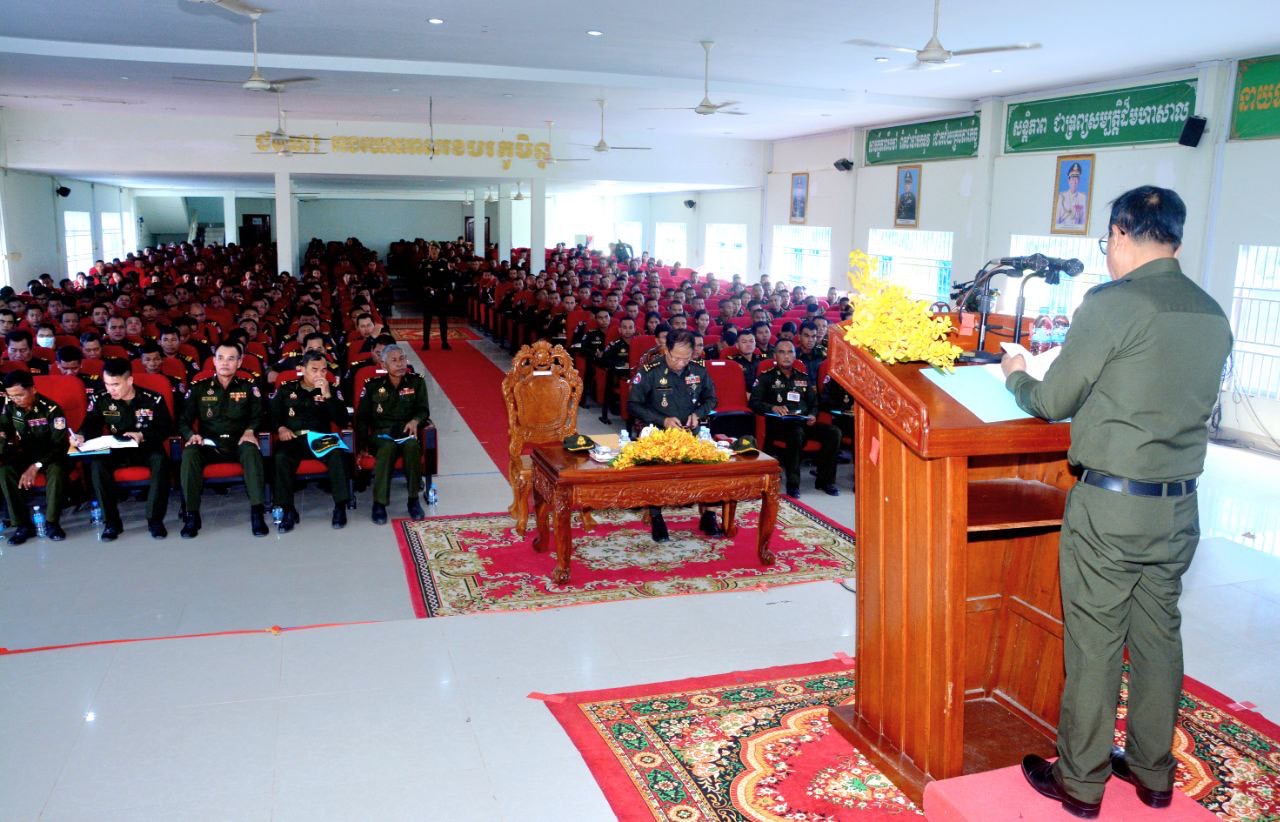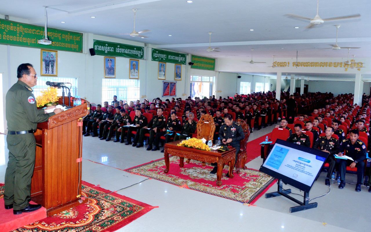 (កំពង់ស្ពឺ) ឯកឧត្ដម ឧត្ដមសេនីយ៍ឯក ខឹម សន នាយរងសេនាធិការចម្រុះ នាយកទីចាត់ការឃោសនាព័ត៌មាន អគ្គបញ្ជាការដ្ឋាន អញ្ជើញជាអធិបតីក្នុងពិធីអប់រំផ្សព្វផ្សាយយុទ្ធសាស្ត្របញ្ចកោណដំណាក់កាលទី១ និងកម្មវិធីនយោបាយរាជរដ្ឋាភិបាលនីតិកាលទី៧ នៃរដ្ឋសភាសម្រាប់ការកសាងនិងការពារជាតិមាតុភូមិ ឆ្នាំ២០២៣-២០២៨ ជូននាយទាហាន យោធាចារ្យ នាយទាហានរង ពលទាហាននឹងនិស្សិតនាយទាហានសកម្ម នៅសាលាទាហានសកម្ម។