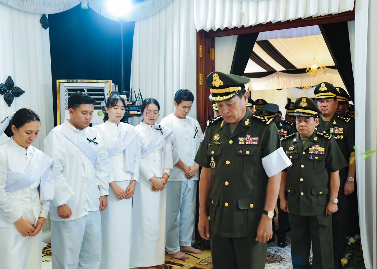 ឯកឧត្តម នាយឧត្តមសេនីយ៍ វង្ស ពិសេន ដឹកនាំគណៈប្រតិភូដាក់កម្រងផ្កាគោរពវិញ្ញាណក្ខន្ធសព ឯកឧត្តម ប្រាក់ វណ្ណឌី នាយករងខុទ្ទកាល័យសម្តេចមហាបវរធិបតី
