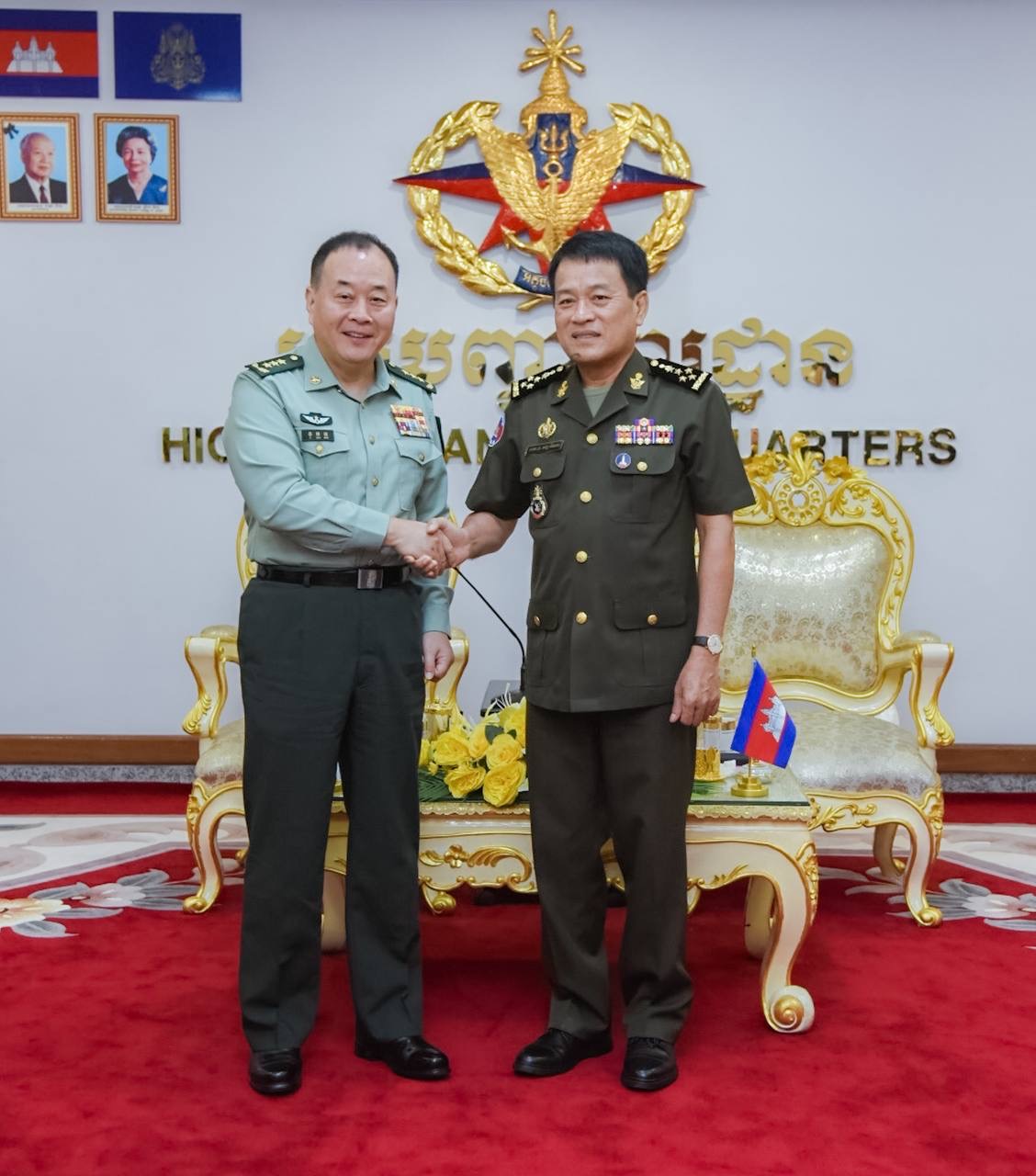 (ភ្នំពេញ)៖នៅព្រឹកថ្ងៃទី៨ ខែវិច្ឆិកា ឆ្នាំ២០២៣ ឯកឧត្តម នាយឧត្តមសេនីយ៍ វង្ស ពិសេន អគ្គមេបញ្ជាការនៃកងយោធពលខេមរភូមិន្ទ បានទទួលជួបឯកឧត្តម នាយឧត្តមសេនីយ៍ លី ឈាវមីង (LI QIAOMING) មេបញ្ជាការកងទ័ពជើងគោក នៃកងទ័ពរំដោះប្រជាជនចិន ក្នុងឱកាសដែលឯកឧត្តមដឹកនាំគណៈប្រតិភូមកបំពេញទស្សនកិច្ចនៅកម្ពុជា។