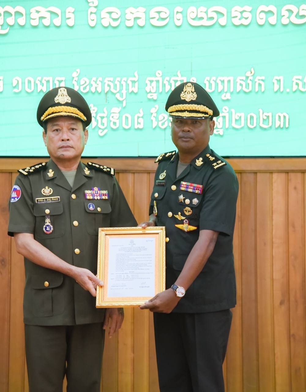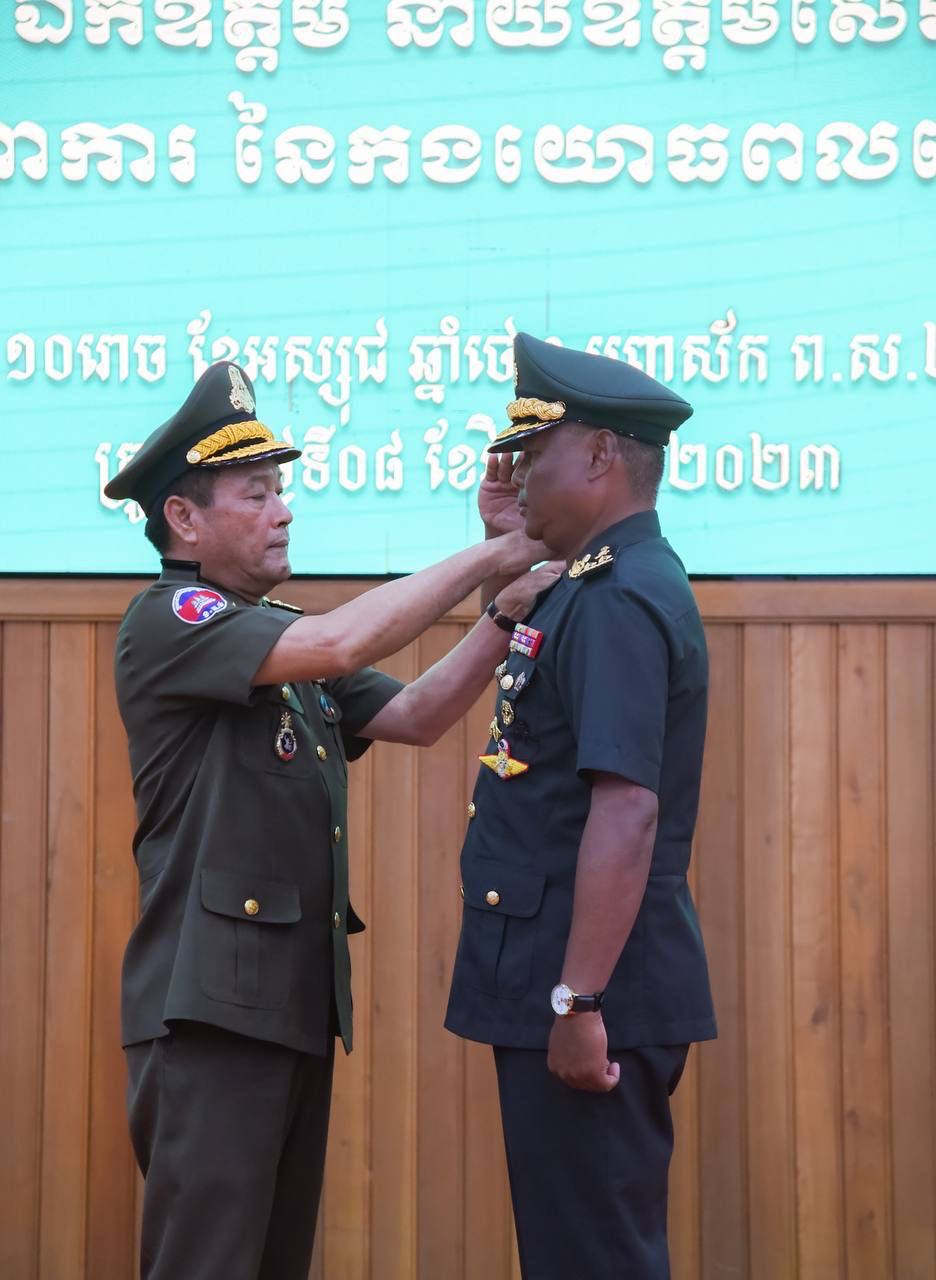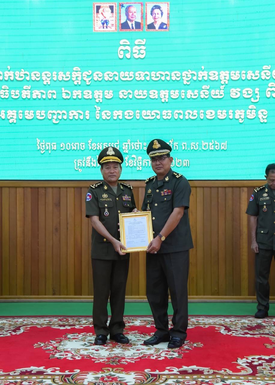 ឯកឧត្តមបន្តថា ឆ្លើយតបនឹងគុណូបការៈថ្លៃថ្លានេះ រាជរដ្ឋាភិបាល ក្រសួងការពារជាតិ និងអគ្គបញ្ជាការ បានយកចិត្តទុកដាក់រៀបចំដំឡើងឋានន្តរសក្តិដល់មេបញ្ជាការ បញ្ជាការដ្ឋានជាតិកម្លាំងពិសេសប្រឆាំងភេរវកម្ម មេបញ្ជាការ បញ្ជាការដ្ឋានទ័ពពិសេស និងនាយការិយាល័យទី៣កងទ័ពជើងគោក ដោយអនុវត្តតាមផែនការកែទម្រង់ចាំបាច់និងយូរអង្វែងរបស់កងយោធពលខេមរភូមិន្ទ។