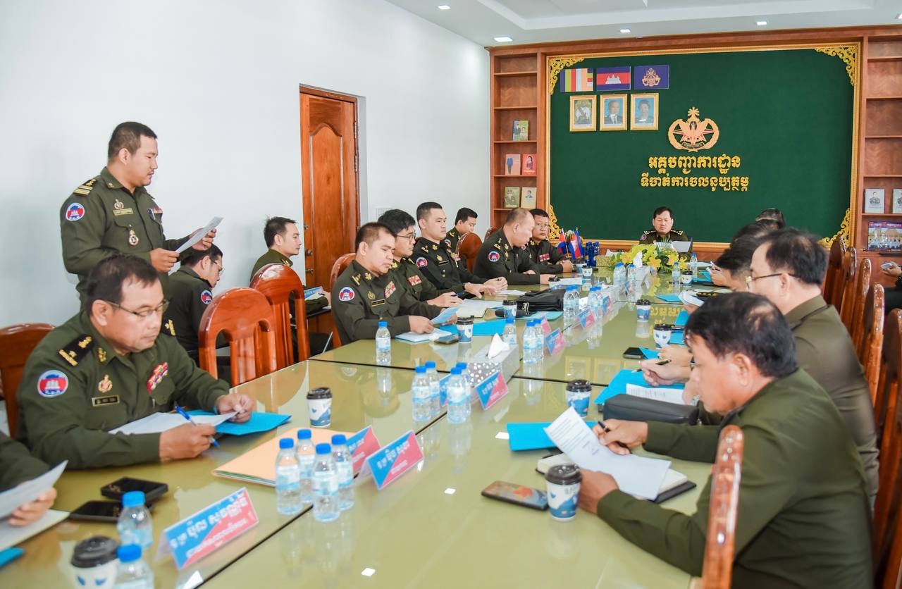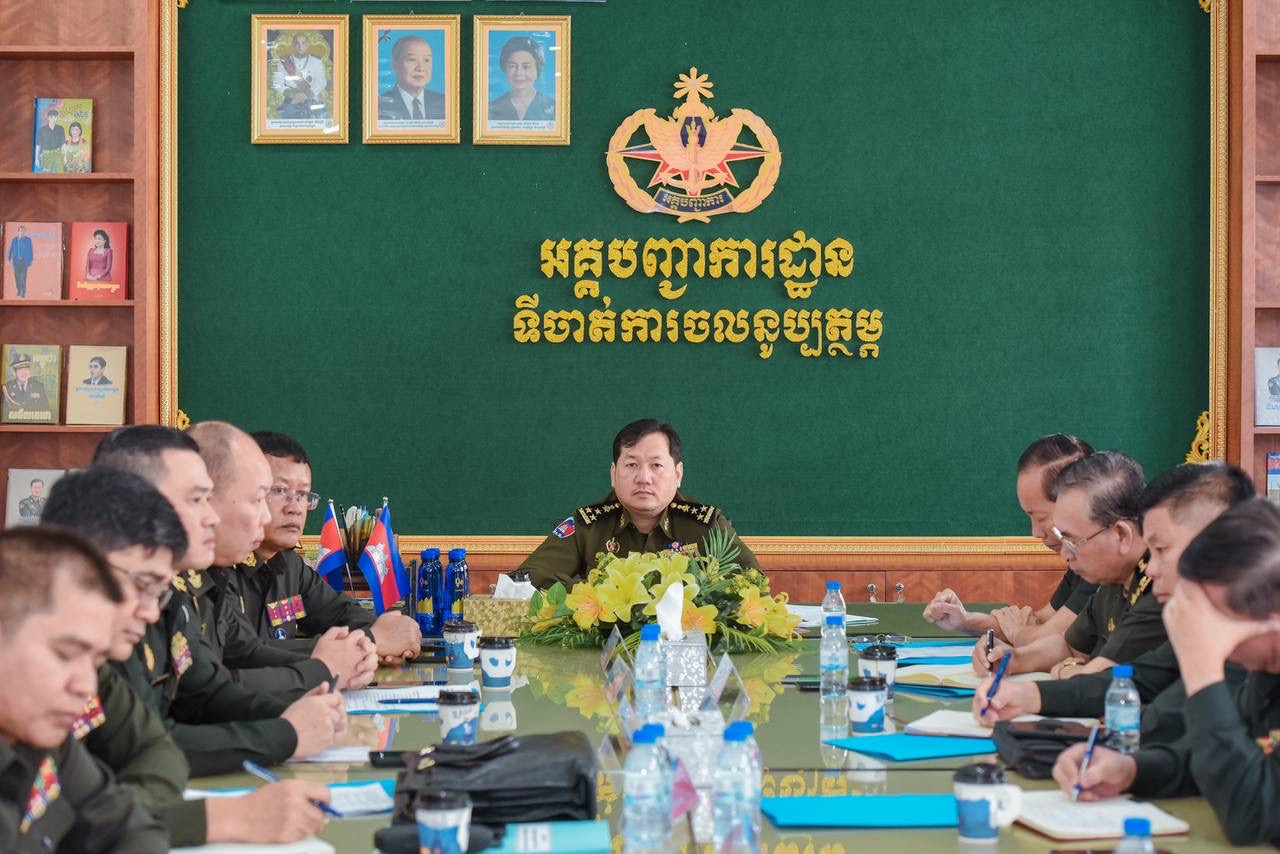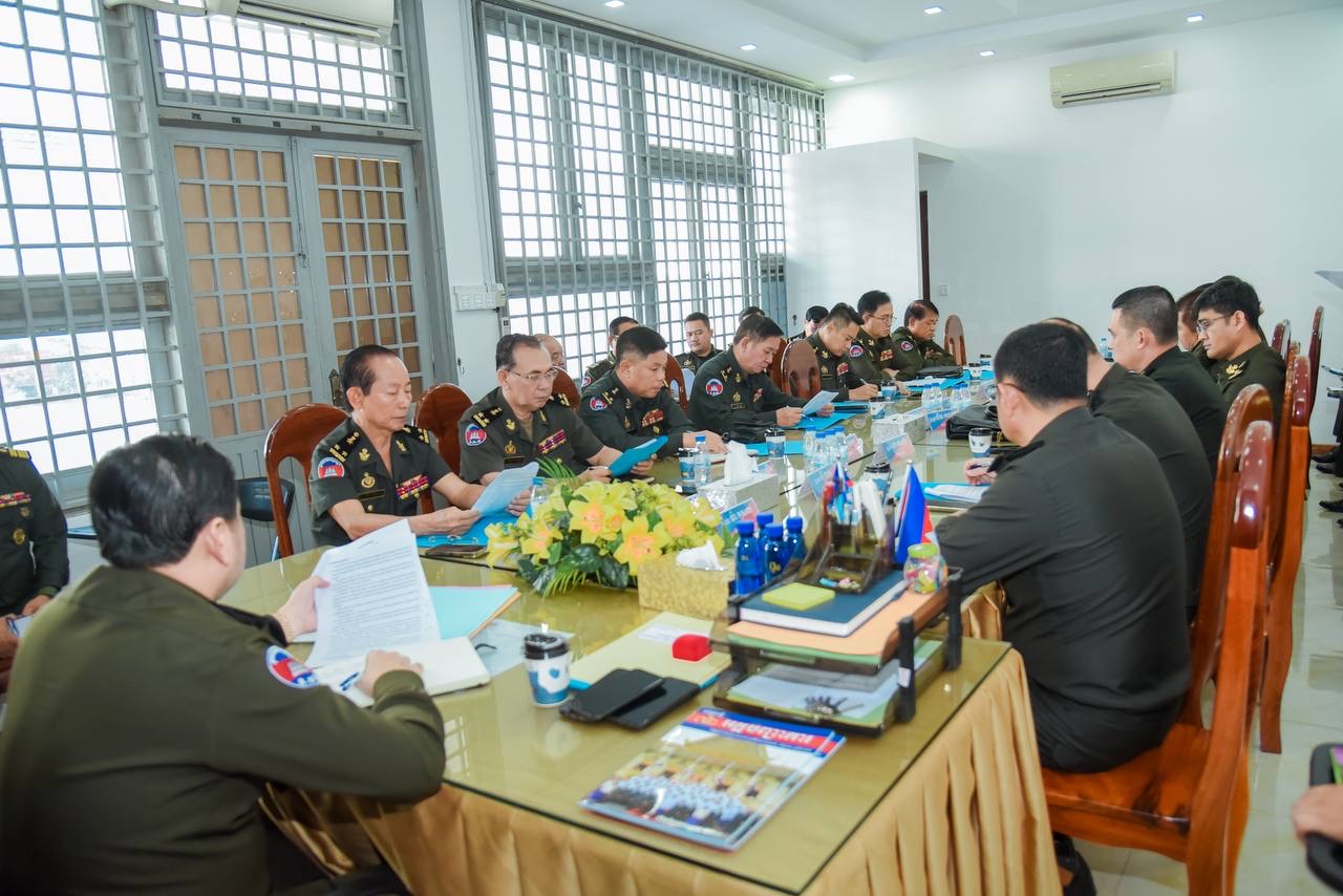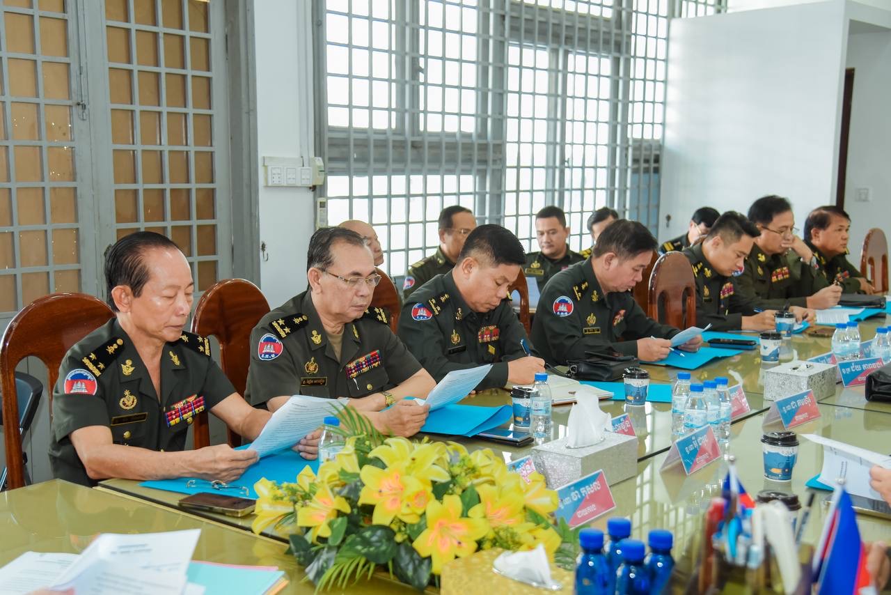 (ភ្នំពេញ)៖ ឯកឧត្តម ឧត្ដមសេនីយ៍ឯក ហួត ឈាងអន នាយរងសេនាធិការចម្រុះនៃកងយោធពលខេមរភូមិន្ទ និងជានាយកទីចាត់ការចលនូប្បត្ថម្ភ អគ្គបញ្ជាការដ្ឋាន បានអញ្ជើញជាអធិបតីដឹកនាំកិច្ចប្រជុំត្រួតពិនិត្យការងារផ្ទៃក្នុងរបស់ទីចាត់ការ។