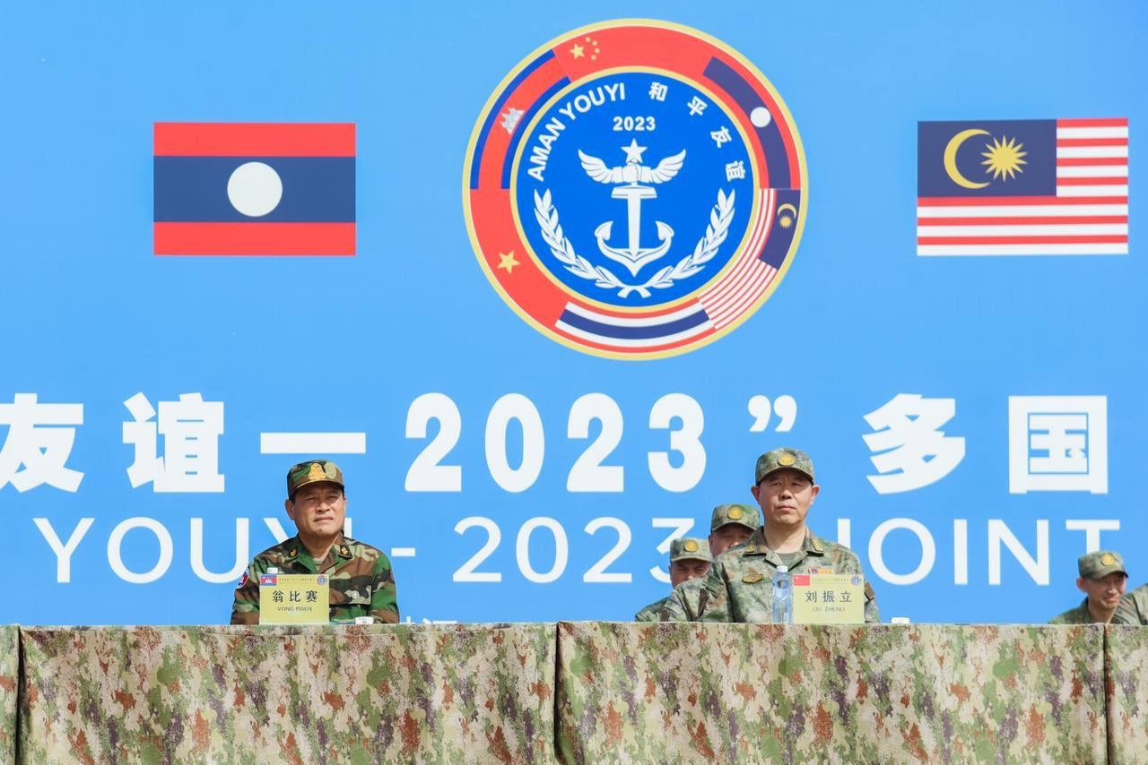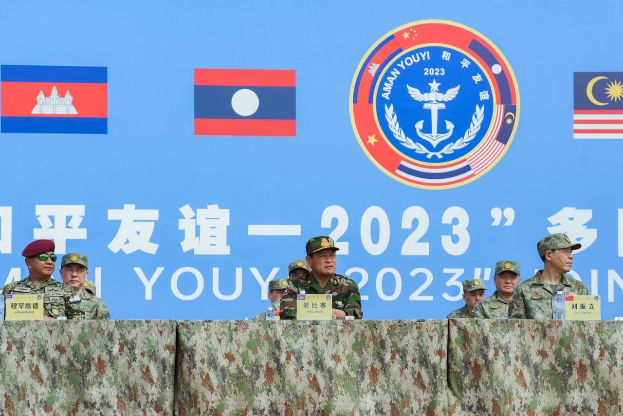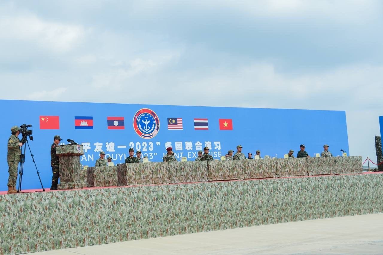(ក្វាងតុង)៖ បន្ទាប់ពីបានហ្វឹកហ្វឺនរួមគ្នាអស់រយៈពេល៩ថ្ងៃ ការធ្វើសមយុទ្ធពហុសាសន៍ ដែលមានឈ្មោះថា «សន្តិភាព មិត្តភាព-ឆ្នាំ២០២៣» នៅក្រុងចាំងជាំង ខេត្តក្វាងតុង ភាគខាងត្បូងប្រទេសចិន បានបិទបញ្ចប់ហើយនៅព្រឹកថ្ងៃទី២២ ខែវិច្ឆិកា ឆ្នាំ២០២៣នេះ ក្រោមអធិបតីភាពមេបញ្ជាការជាន់ខ្ពស់ នៃបណ្តាប្រទេសចូលរួមទាំង៦ រួមមាន: ចិន កម្ពុជា ម៉ាឡេស៊ី ឡាវ ថៃ និងវៀតណាម។