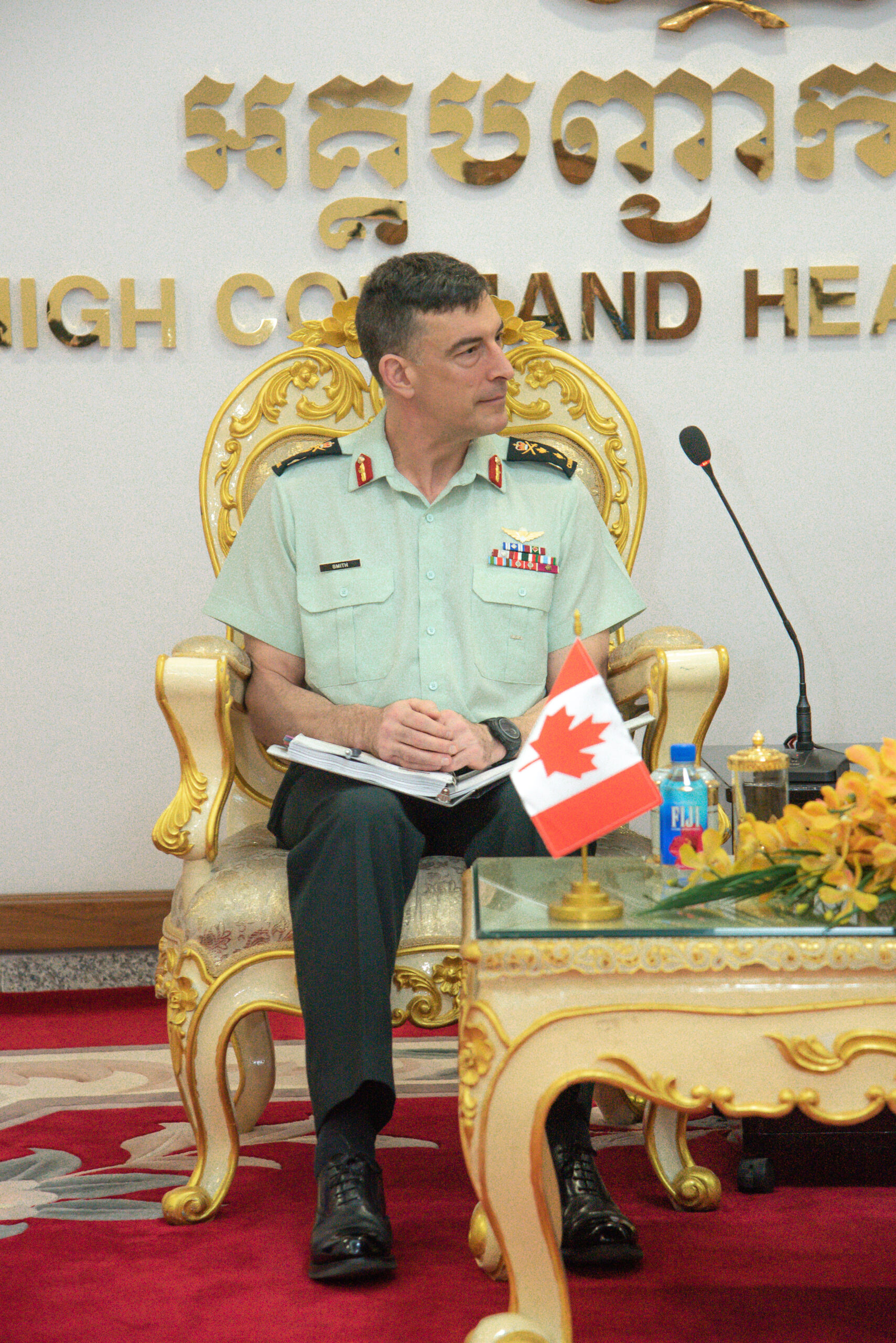 ជាកិច្ចឆ្លើយតប លោកឧត្តមសេនីយ៍ទោ ហ្គ្រេហ្គោរី ស្មីត បានថ្លែងអំណរគុណ ឯកឧត្តម នាយឧត្តមសេនីយ៍ អគ្គមេបញ្ជាការ ដែលបានផ្ដល់ឱកាសឲ្យរូបលោកបានចូលជួបសំដែងការគួរសម និងបានស្វែងយល់ពីស្ថានភាពនយោបាយ សេដ្ឋកិច្ចរបស់កម្ពុជា ក៏ដូចជាការបង្ហាញអំពីឱកាសនៃការពង្រឹងកិច្ចសហប្រតិបត្តិការរវាងប្រទេសទាំងពីរ កម្ពុជា-កាណាដាផងដែរ។