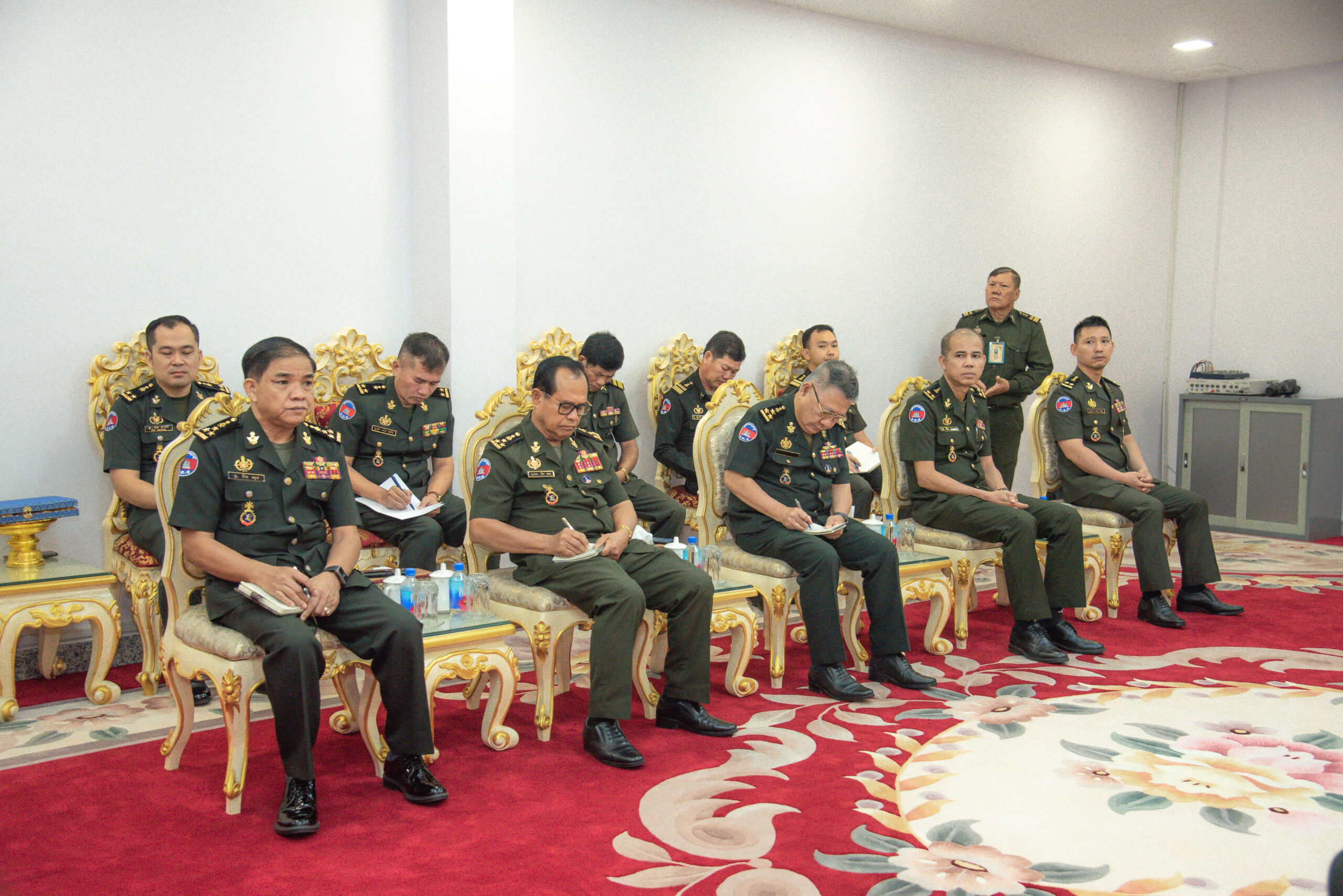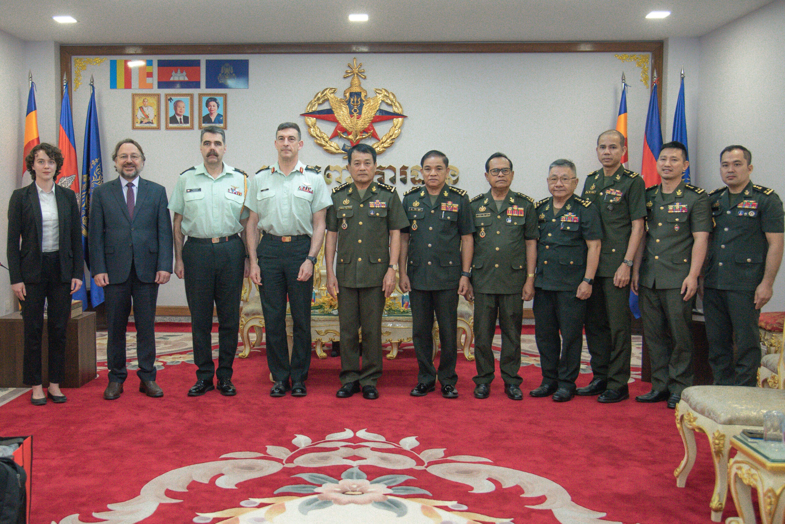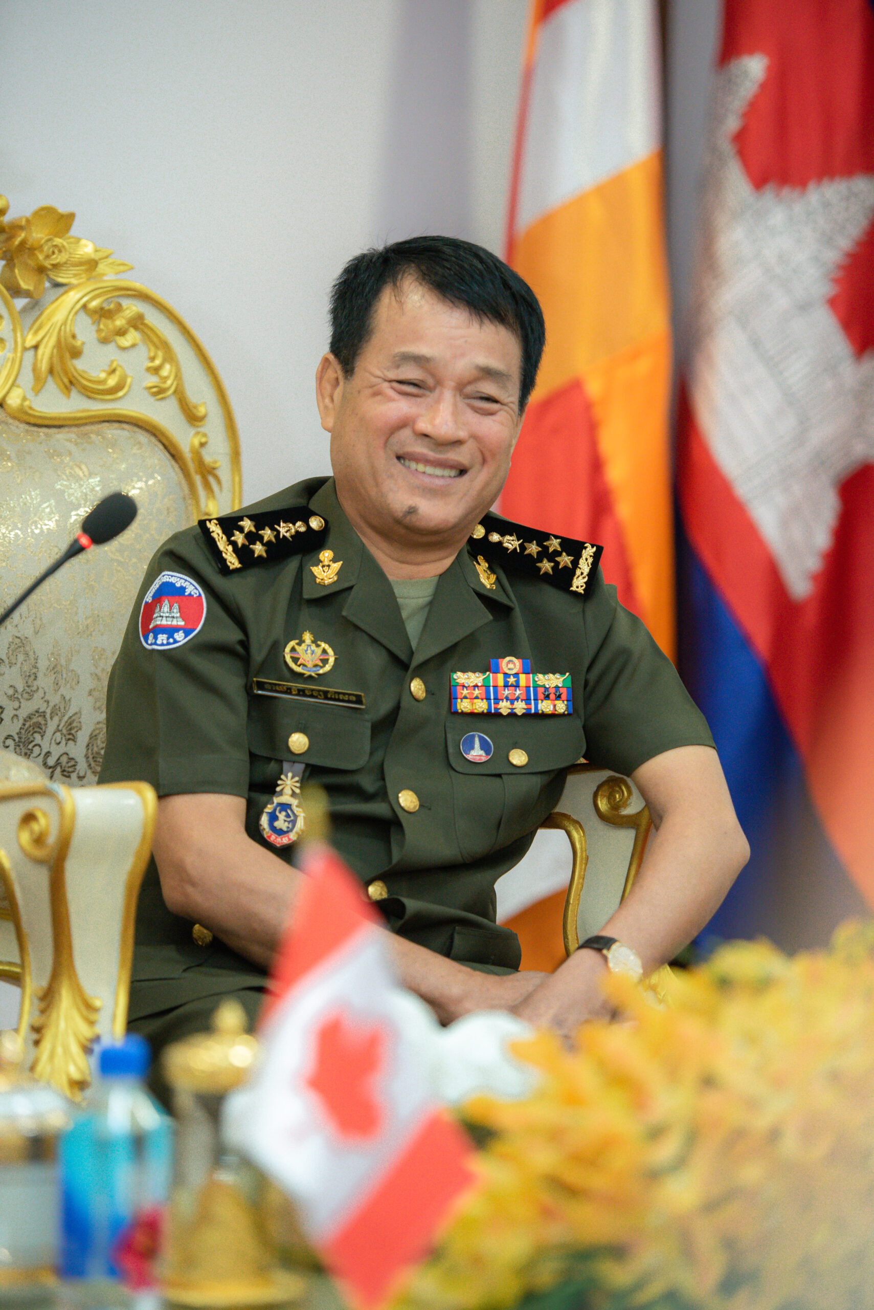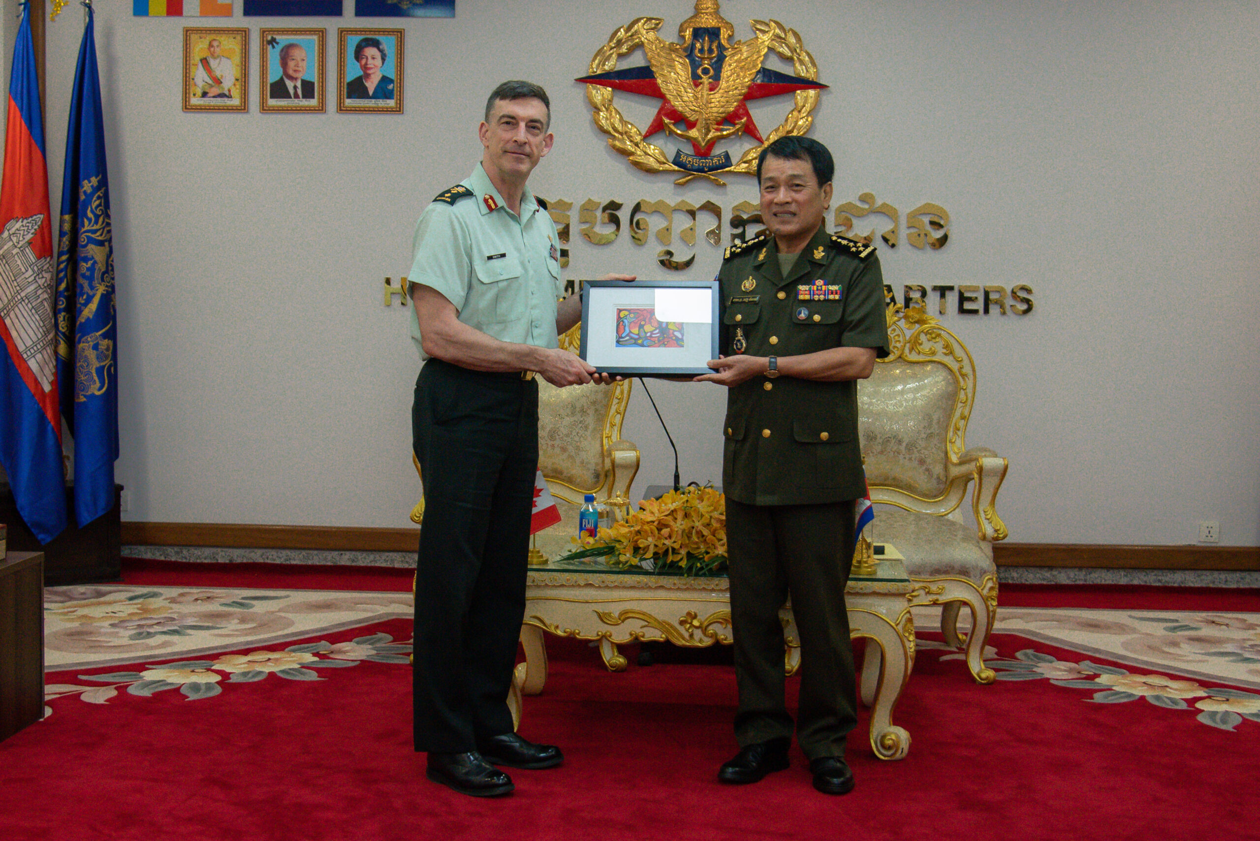 (ភ្នំពេញ)៖ នៅព្រឹកថ្ងៃទី១៧ ខែមករា ឆ្នាំ២០២៤ ឯកឧត្តម នាយឧត្តមសេនីយ៍ វង្ស ពិសេន អគ្គមេបញ្ជាការ នៃកងយោធពលខេមរភូមិន្ទ បានអនុញ្ញាតឱ្យលោកឧត្តមសេនីយ៍ទោ ហ្គ្រេហ្គោរី ស្មីត (Gregory Smith) អគ្គនាយក អគ្គនាយកដ្ឋាននយោបាយ សន្តិសុខអន្តរជាតិកាណាដា ចូលជួបសម្តែងការគួរសម នៅអគ្គបញ្ជាការដ្ឋាន។