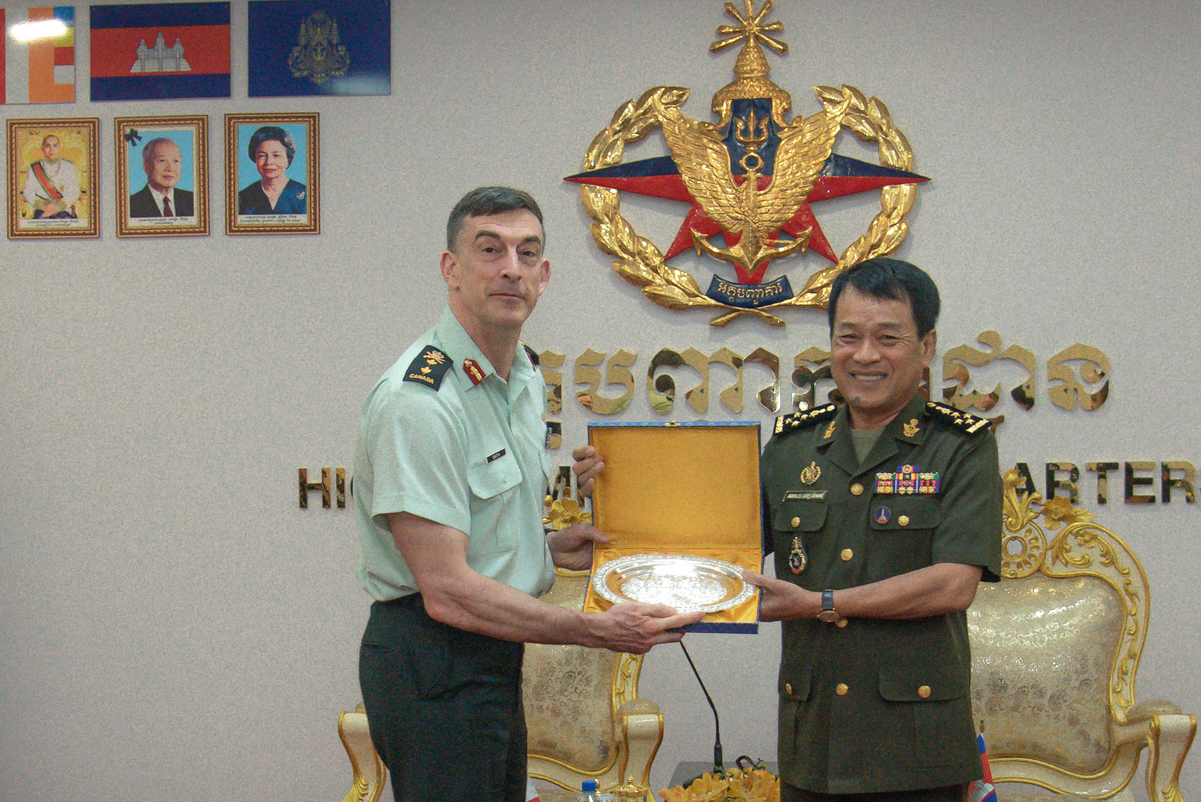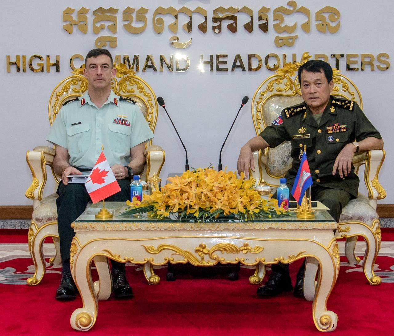 ឯកឧត្តម នាយឧត្តមសេនីយ៍ អគ្គមេបញ្ជាការ បានស្នើសុំកាណាដាជួយបណ្ដុះបណ្ដាលធនធានមនុស្សក្នុងកងយោធពលខេមរភូមិន្ទ ការផ្លាស់ប្ដូរទស្សនកិច្ចគ្រប់កម្រិត ការផ្លាស់ប្ដូរព័ត៌មានសំដៅរួមគ្នាទប់ស្កាត់អំពើភេរវកម្ម ការប្រយុទ្ធប្រឆាំងឧក្រិដ្ឋកម្មឆ្លងដែននានា និងកិច្ចសហប្រតិបត្តិការលើការងារសង្គ្រោះគ្រោះមហន្តរាយ បេសកកម្មថែរក្សាសន្តិភាព ក៏ដូចជាកិច្ចសហប្រតិបត្តិការរវាងប្រភេទទ័ពនិងប្រភេទទ័ព។