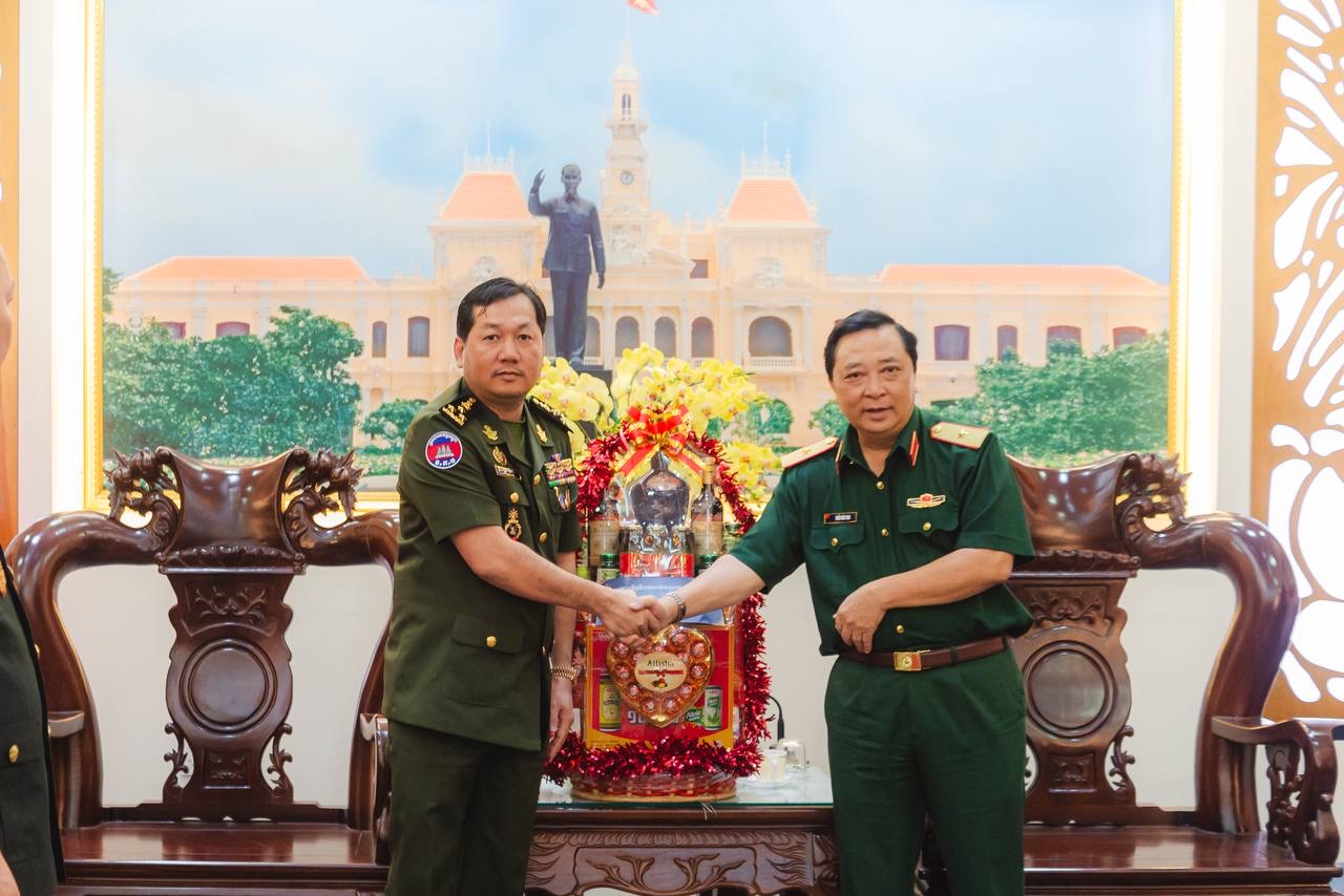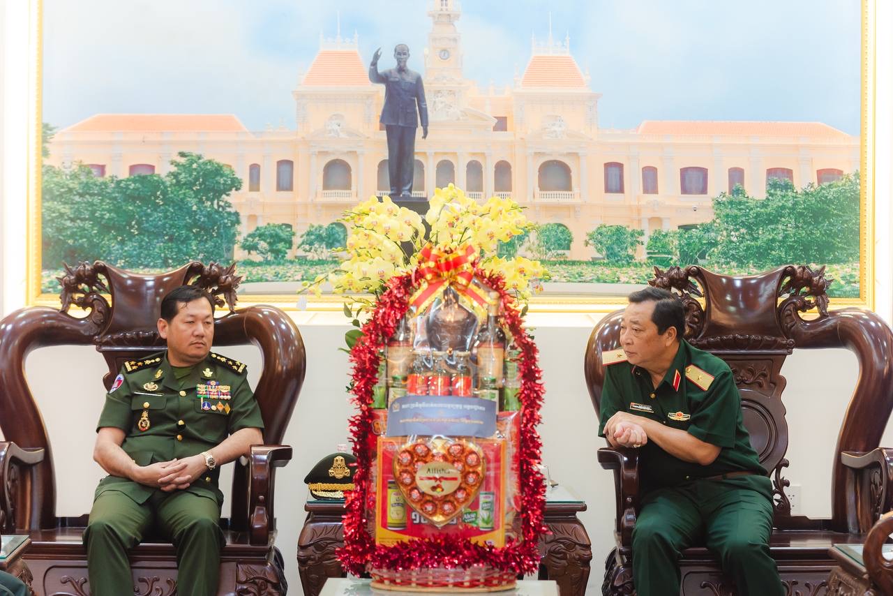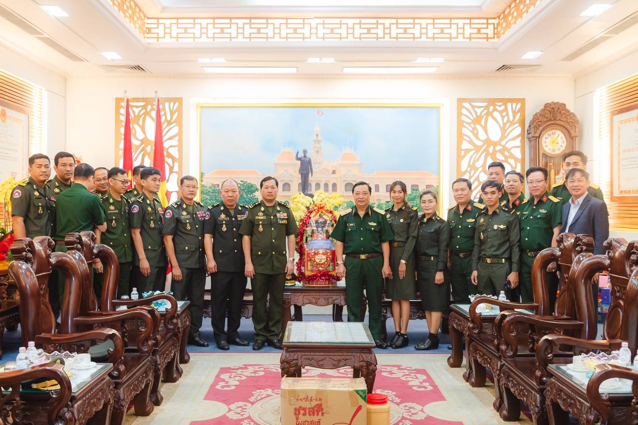 (វៀតណាម)៖ ដោយបានទទួលការអនុញ្ញាតដ័ខ្ពង់ខ្ពស់ពី ឯកឧត្ដម នាយឧត្ដមសេនីយ៍ វង្ស ពិសេន អគ្គមេបញ្ជាការ កងយោធពលខេមរភូមិន្ទ ឯកឧត្តម ឧត្ដមសេនីយ៍ឯក ហួត ឈាងអន នាយរងសេនាធិការចម្រុះ នាយកទីចាត់ការចលនូប្បត្ថម្ភ អគ្គបញ្ជាការ នៅរសៀលថ្ងៃទី៣០ ខែមករា ឆ្នាំ២០២៤ បានដឹកនាំគណៈប្រតិភូទីចាត់ការចលនូប្បត្ថម្ភទៅបំពេញទស្សនកិច្ច និងជូនពរនៅបញ្ជាការដ្ឋានយោធាទីក្រុងហូជីមិញ នៃកងទ័ពប្រជាជនវៀតណាម ក្នុងឱកាសបុណ្យចូលឆ្នាំថ្មី ប្រពៃណីវៀតណាម៕