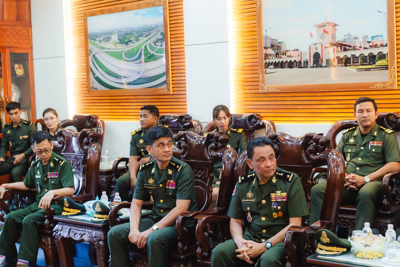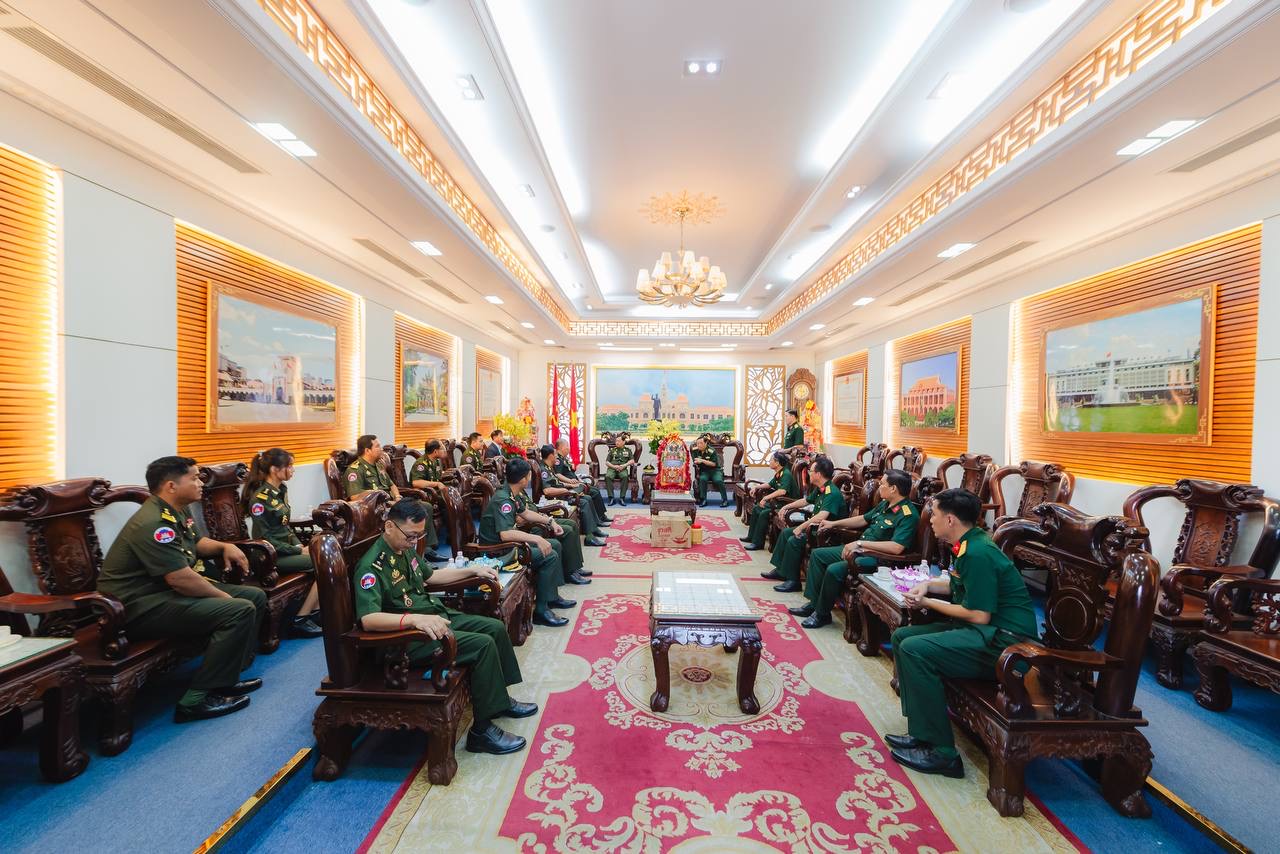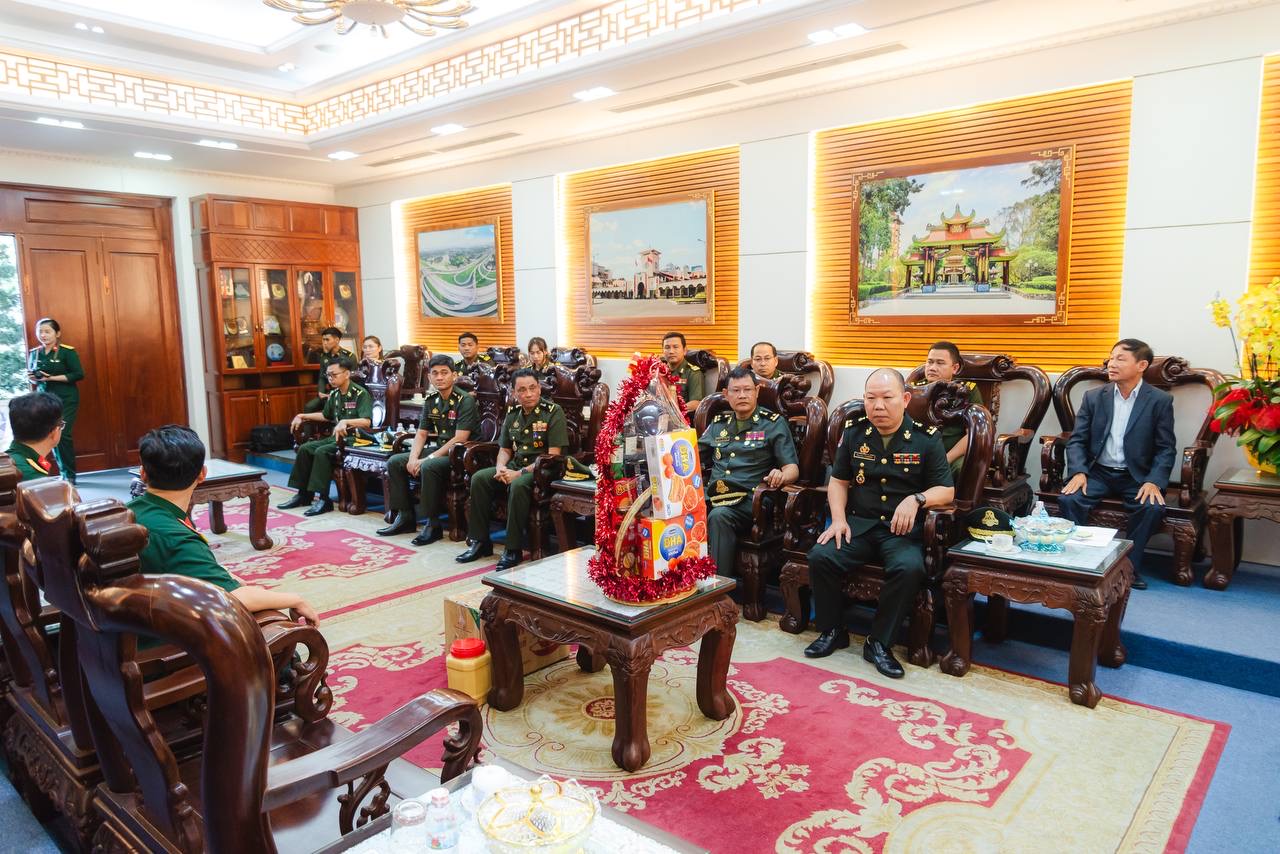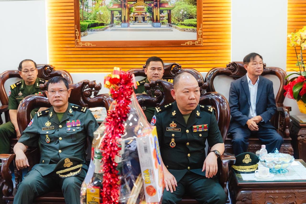 (វៀតណាម)៖ ដោយបានទទួលការអនុញ្ញាតដ័ខ្ពង់ខ្ពស់ពី ឯកឧត្ដម នាយឧត្ដមសេនីយ៍ វង្ស ពិសេន អគ្គមេបញ្ជាការ កងយោធពលខេមរភូមិន្ទ ឯកឧត្តម ឧត្ដមសេនីយ៍ឯក ហួត ឈាងអន នាយរងសេនាធិការចម្រុះ នាយកទីចាត់ការចលនូប្បត្ថម្ភ អគ្គបញ្ជាការ នៅរសៀលថ្ងៃទី៣០ ខែមករា ឆ្នាំ២០២៤ បានដឹកនាំគណៈប្រតិភូទីចាត់ការចលនូប្បត្ថម្ភទៅបំពេញទស្សនកិច្ច និងជូនពរនៅបញ្ជាការដ្ឋានយោធាទីក្រុងហូជីមិញ នៃកងទ័ពប្រជាជនវៀតណាម ក្នុងឱកាសបុណ្យចូលឆ្នាំថ្មី ប្រពៃណីវៀតណាម៕