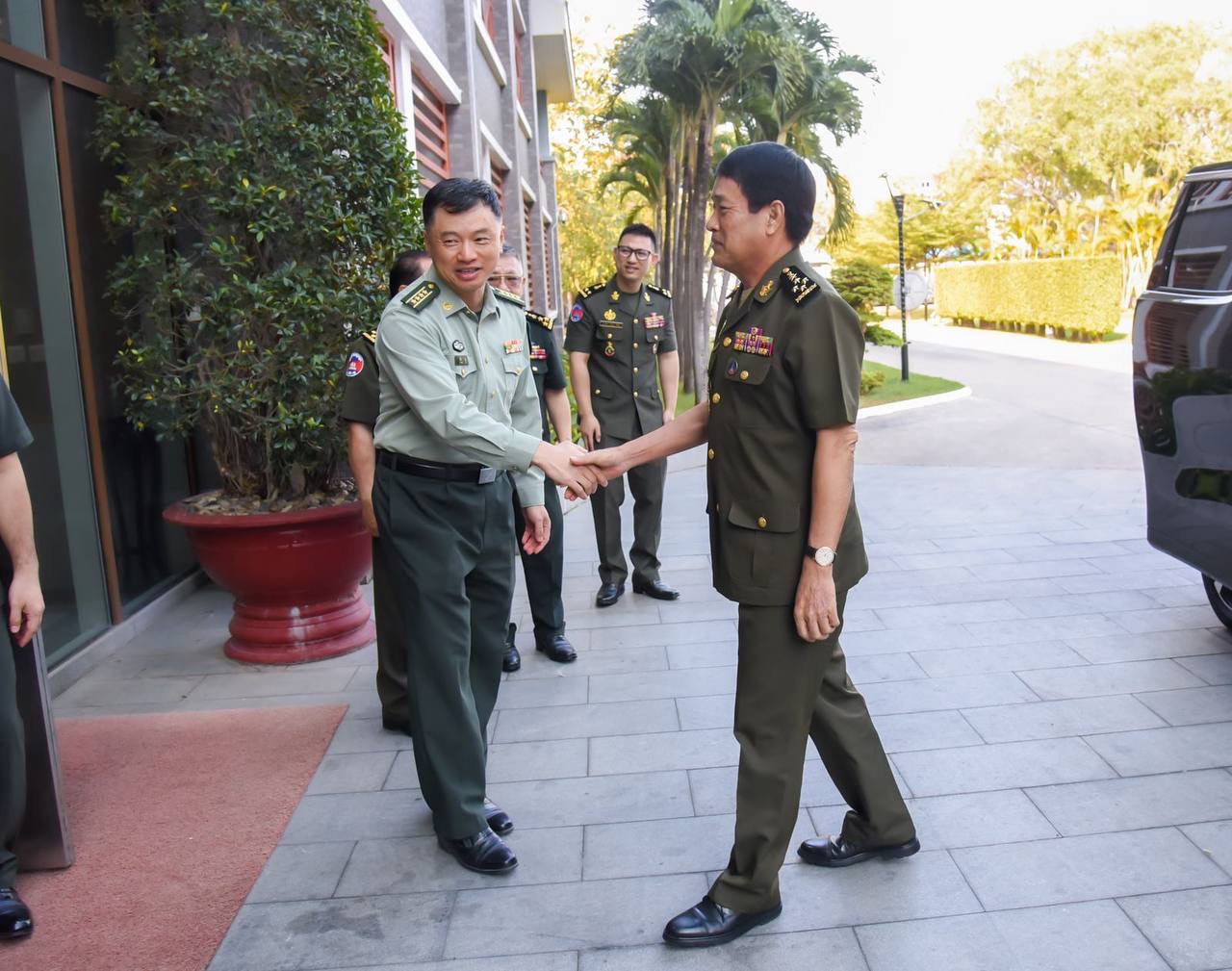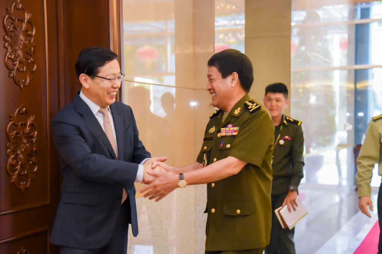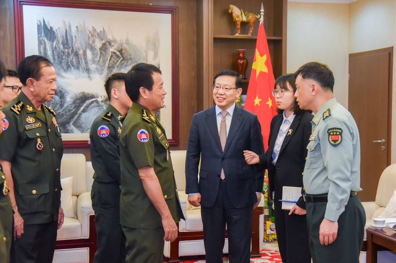 លើវិស័យយោធា ឯកឧត្តមឯកអគ្គរដ្ឋទូតចិន បានគូបញ្ជាក់អំពីទំនាក់ទំនងដ៏ល្អរវាងកងទ័ពប្រទេសទាំងពីរ ទាំងការផ្ដល់ជំនួយ ក៏ដូចជាការហ្វឹកហ្វឺនធ្វើសមយុទ្ធ ធ្វើឲ្យកងទ័ពប្រទេសទាំងពីរ ទទួលបានការផ្លាស់ប្តូរចំណេះដឹង បទពិសោធន៍ រៀនសូត្រពីគ្នា ទៅវិញទៅមក បង្កើនកិច្ចសហការជាមួយគ្នាកាន់តែជិតស្និទ្ធ ក្នុងគោលដៅសម្រាប់ជួយផ្ដល់ការគាំទ្រដល់សន្តិសុខក្នុងតំបន់ និងសកលលោក។