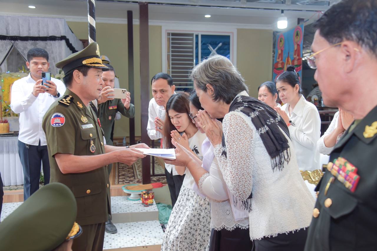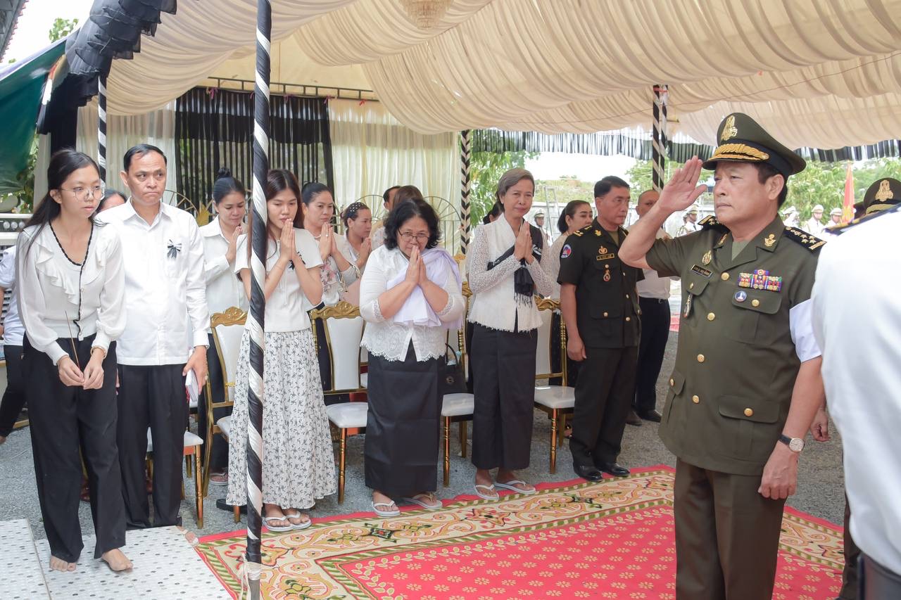 ឯកឧត្តម នាយឧត្តមសេនីយ៍ អគ្គមេបញ្ជាការ នៃកងយោធពលខេមរភូមិន្ទ បានឧទ្ទិសបួងសួងសូមឲ្យដួងវិញ្ញាណក្ខន្ធ ឯកឧត្តម ឧត្តមសេនីយ៍ឯក ពេជ្រ ឈឿន បានចាប់បដិសន្ធិក្នុងសុគតិភពកុំបីឃ្លៀងឃ្លាតឡើយ។