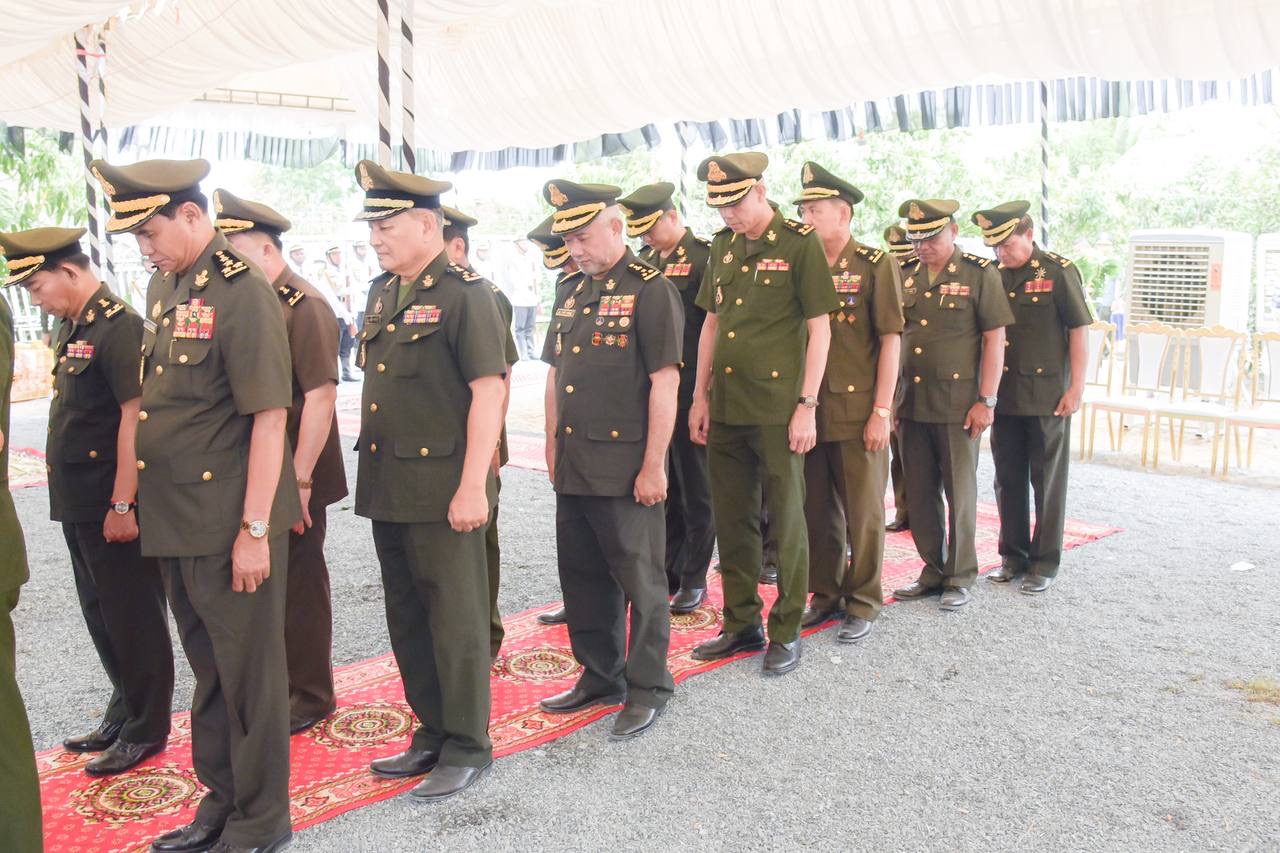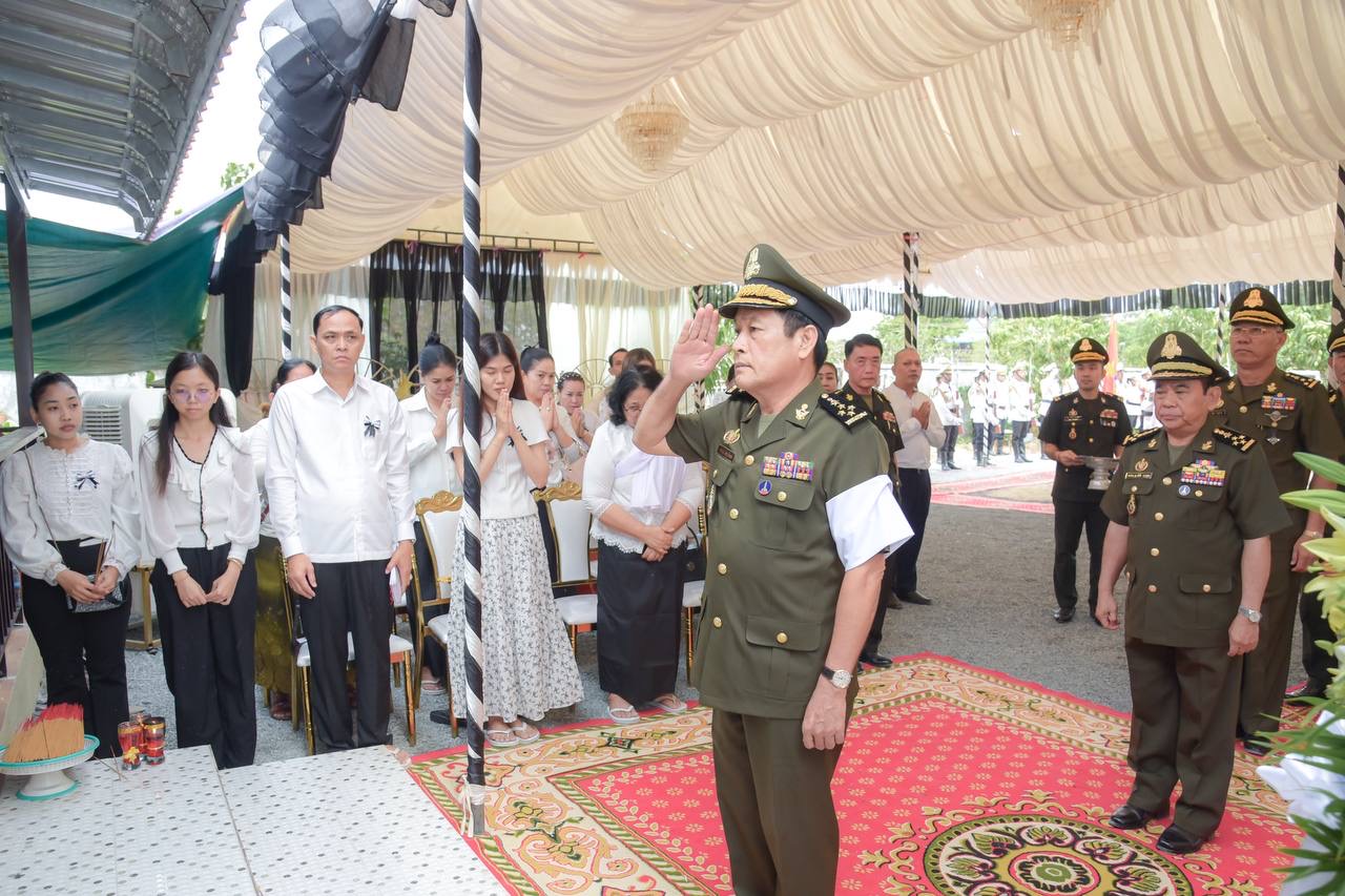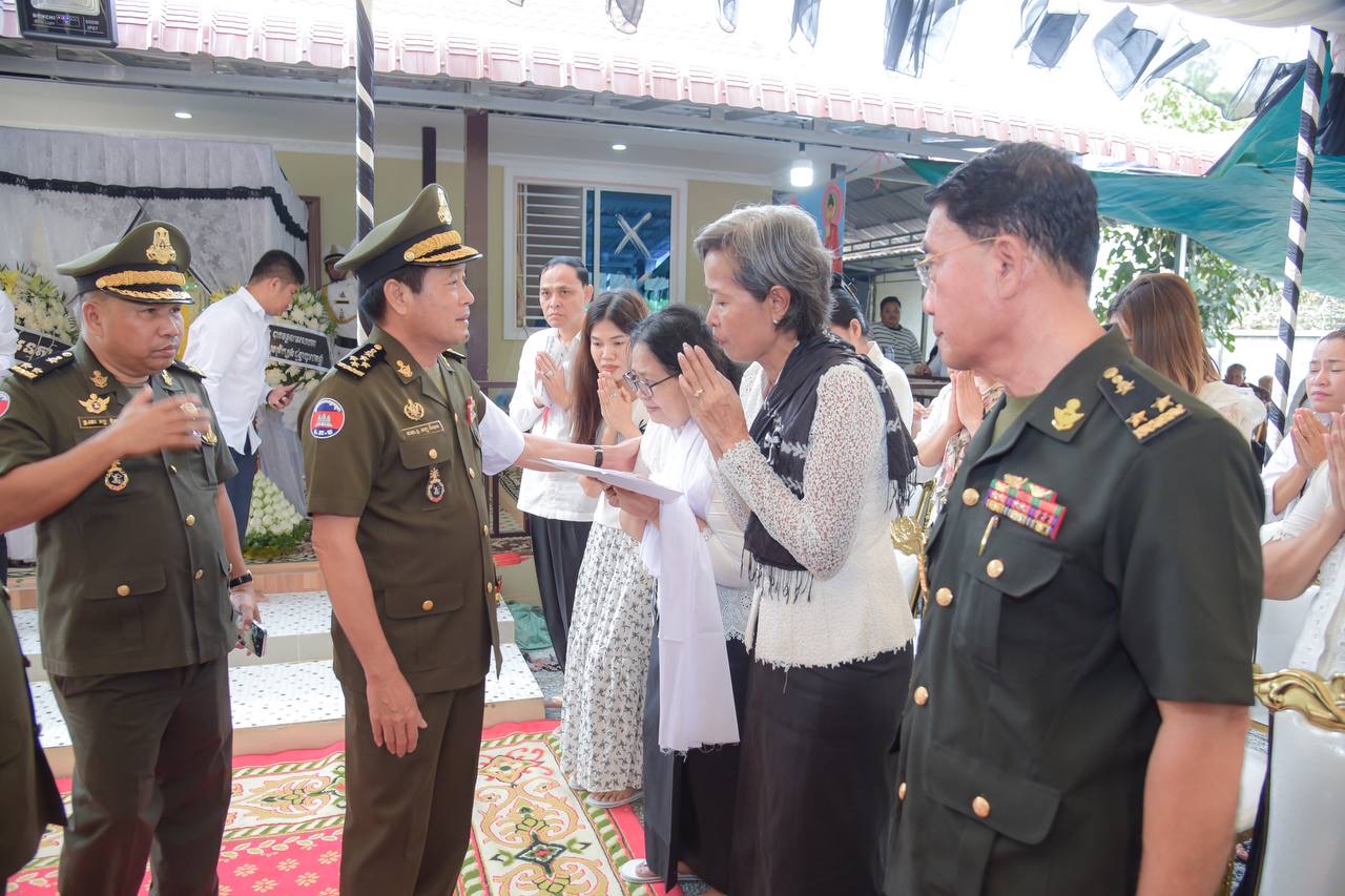 (កំពង់ស្ពឺ)៖ ឯកឧត្តម នាយឧត្តមសេនីយ៍ វង្ស ពិសេន អគ្គមេបញ្ជាការ នៃកងយោធពលខេមរភូមិន្ទ នាព្រឹកទី២៩ ខែមីនា ឆ្នាំ២០២៤នេះ បានដឹកនាំគណៈប្រតិភូអគ្គបញ្ជាការដ្ឋាន ចូលរួមគោរពវិញ្ញាណក្ខន្ធសព ឯកឧត្តម ឧត្តមសេនីយ៍ឯក ពេជ្រ ឈឿន អគ្គនាយករង អគ្គនាយកដ្ឋានភស្តុភារ ហិរញ្ញវត្ថុ នៅគេហដ្ឋានសព ស្ថិតនៅភូមិត្រពាំងត្រស់ ឃុំសំរោងទង ស្រុកសំរោងទង ខេត្តកំពង់ស្ពឺ។
