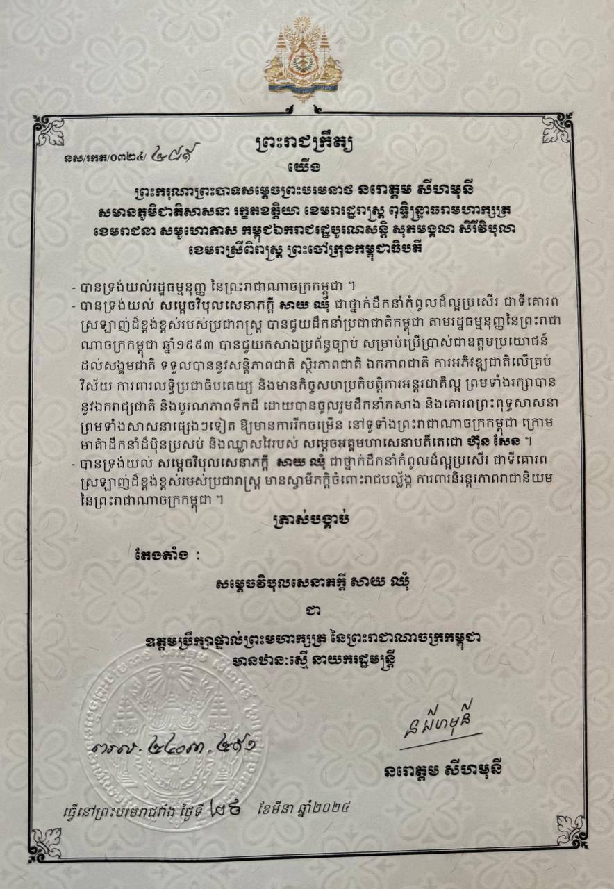 ជាថ្មីម្តងទៀត យើងសូមប្រសិទ្ធពរជ័យមហាប្រសើរជូនចំពោះ សម្តេចវិបុលសេនាភក្តី ព្រមទាំងក្រុមគ្រួសារ សូមបានសមប្រកបដោយព្រះពុទ្ធពរទាំង៤ប្រការគឺ អាយុ វណ្ណៈ សុខៈ ពលៈ កុំបីឃ្លៀងឃ្លាតឡើយ៕