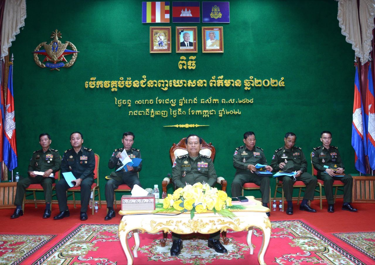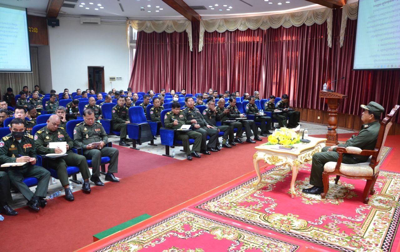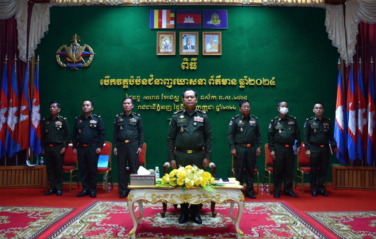 (ភ្នំពេញ) ឯកឧត្ដម ឧត្តមសេនីយ៍ឯក ខឹម សន នាយរងសេនាធិការចម្រុះ នាយកទីចាត់ការឃោសនាព័ត៌មាន អគ្គបញ្ជាការដ្ឋាននាព្រឹកថ្ងៃទី១ ខែកកដ្ដា ឆ្នាំ២០២៤ បានអញ្ជើញបើកវគ្គបំប៉នជំនាញសារព័ត៌មានជំនាន់ទី១១ នៅសាលប្រជុំអគ្គបញ្ជាការដ្ឋាន។