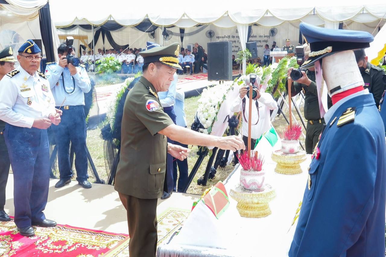 (ភ្នំពេញ)៖ រសៀលថ្ងៃទី២ ខែសីហា ឆ្នាំ២០២៤ ឯកឧត្តម នាយឧត្តមសេនីយ៍ វង្ស ពិសេន អគ្គមេបញ្ជាការ នៃកងយោធពលខេមរភូមិន្ទ បានអញ្ជើញប្រទានភ្លើងបូជាសពអាកាសយានិក២រូប គឺលោកឧត្តមសេនីយ៍ត្រី ស៊ុន ផល្លា និងលោកវរសេនីយ៍ទោ ខេង ឆៃយុទ្ធ ដែលបានពលីជីវិតដោយសារឧបទ្ទវហេតុធ្លាក់ឧទ្ធម្ភាគចក្រកាលពីថ្ងៃទី១២ ខែកក្កដា ឆ្នាំ២០២៤ ក្នុងអំឡុងពេលហោះហើរហ្វឹកហ្វឺន នៅភូមិសាស្ត្រឃុំថ្មដា ស្រុកវាលវែង ខេត្តពោធិ៍សាត់។