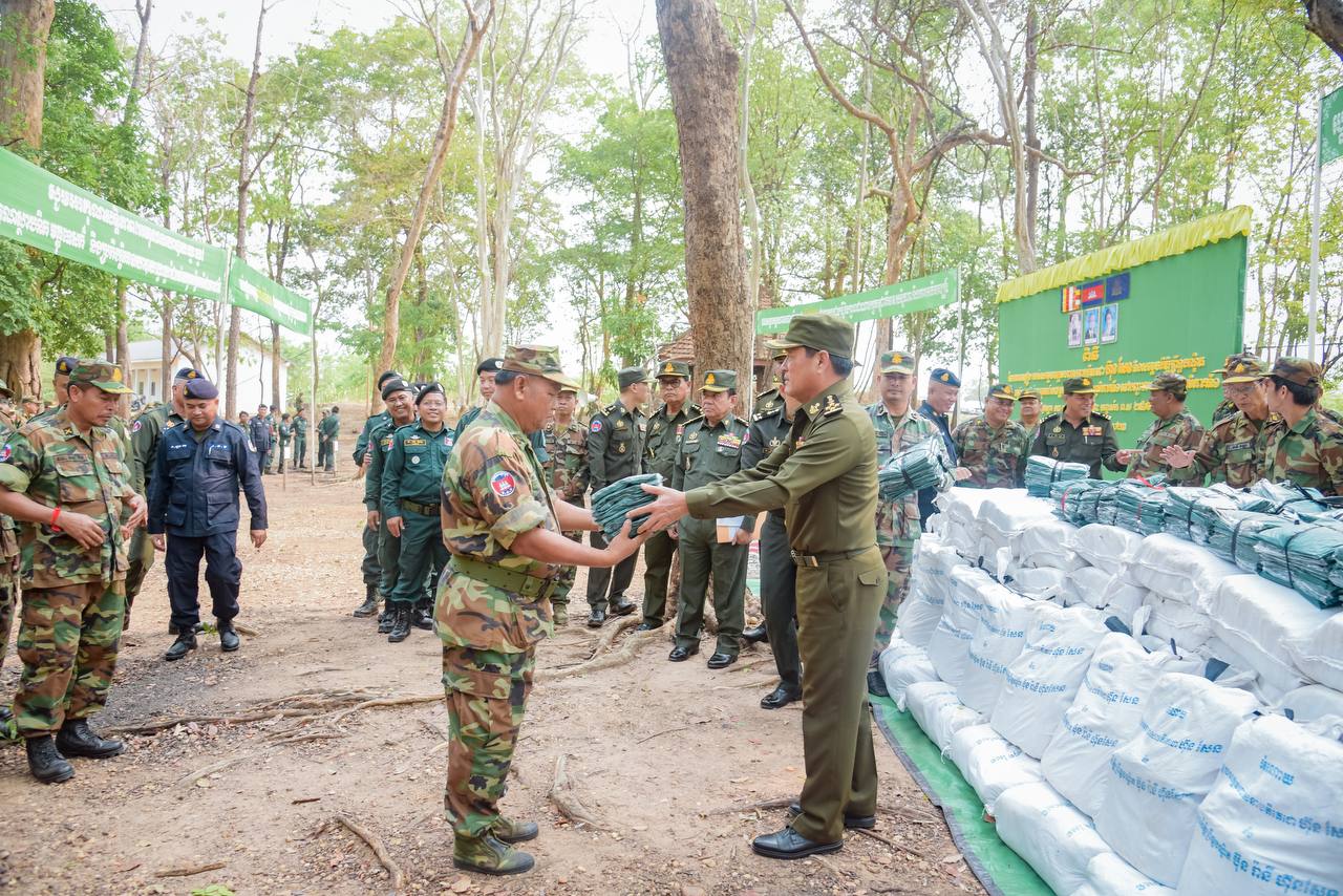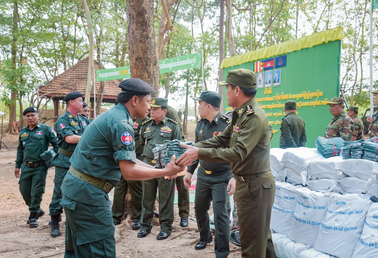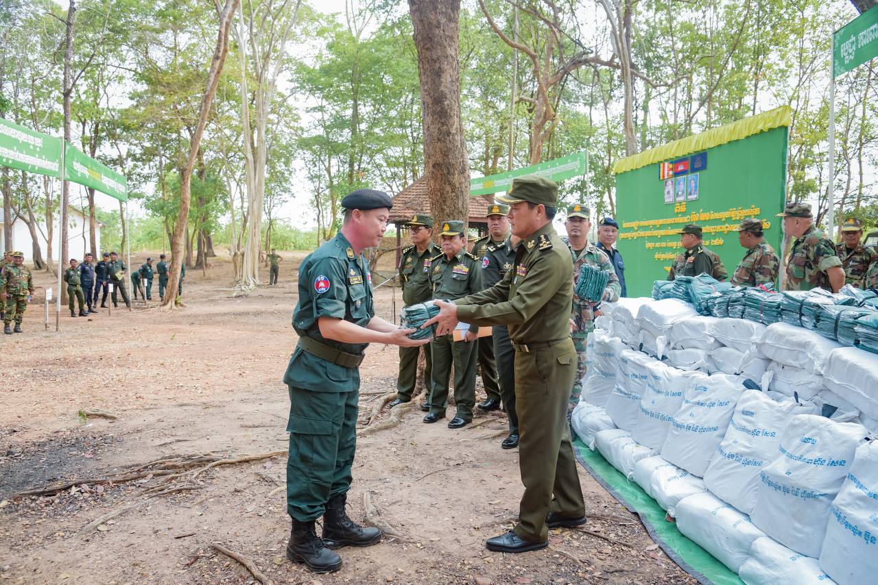 (ស្ទឹងត្រែង)៖ នាយឧត្ដមសេនីយ៍ វង្ស ពិសេន អគ្គមេបញ្ជាការ នៃកងយោធពលខេមរភូមិន្ទ បានចែកអាវភ្លៀងជាអំណោយដ៏ថ្លៃថ្លារបស់សម្ដេចតេជោ ហ៊ុន សែន នាយករដ្ឋមន្ត្រីកម្ពុជា និងសម្ដេចកិត្តិព្រឹទ្ធបណ្ឌិត ប៊ុន រ៉ានី ហ៊ុនសែន ចែកជូនកងកម្លាំងឈរជើងនៅយោធភូមិភាគទី១ នាព្រឹកថ្ងៃទី១៨ ខែមេសា ឆ្នាំ២០២៣ នៅទីបញ្ជាការវរសេនាតូចរថក្រោះរបស់យោធភូមិភាគទី១។