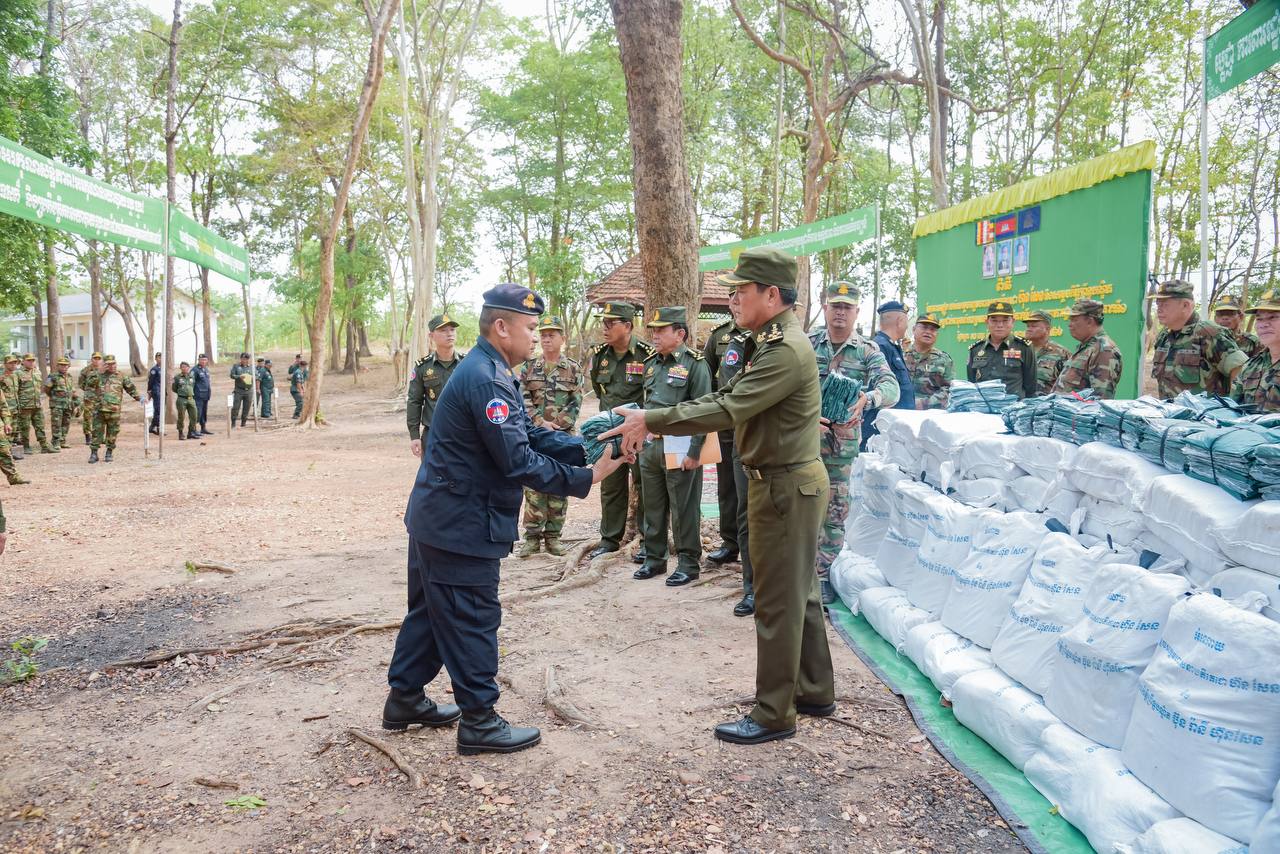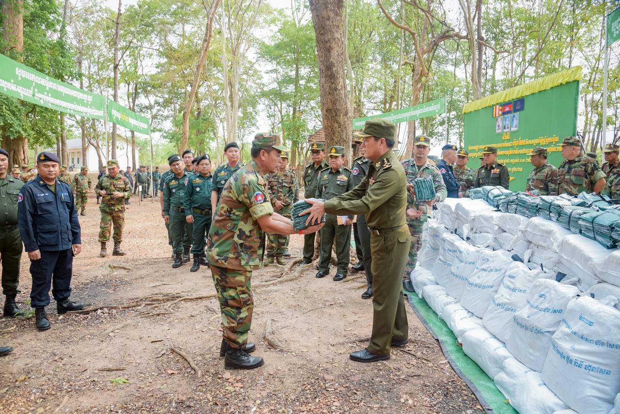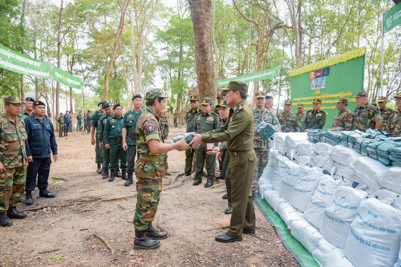 (ស្ទឹងត្រែង)៖ នាយឧត្ដមសេនីយ៍ វង្ស ពិសេន អគ្គមេបញ្ជាការ នៃកងយោធពលខេមរភូមិន្ទ បានចែកអាវភ្លៀងជាអំណោយដ៏ថ្លៃថ្លារបស់សម្ដេចតេជោ ហ៊ុន សែន នាយករដ្ឋមន្ត្រីកម្ពុជា និងសម្ដេចកិត្តិព្រឹទ្ធបណ្ឌិត ប៊ុន រ៉ានី ហ៊ុនសែន ចែកជូនកងកម្លាំងឈរជើងនៅយោធភូមិភាគទី១ នាព្រឹកថ្ងៃទី១៨ ខែមេសា ឆ្នាំ២០២៣ នៅទីបញ្ជាការវរសេនាតូចរថក្រោះរបស់យោធភូមិភាគទី១។