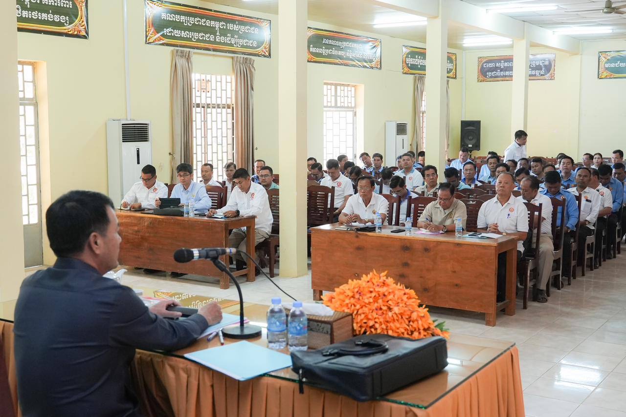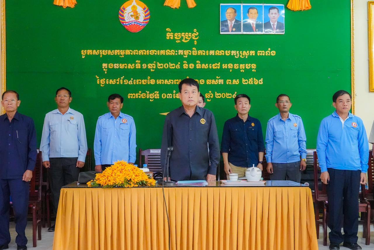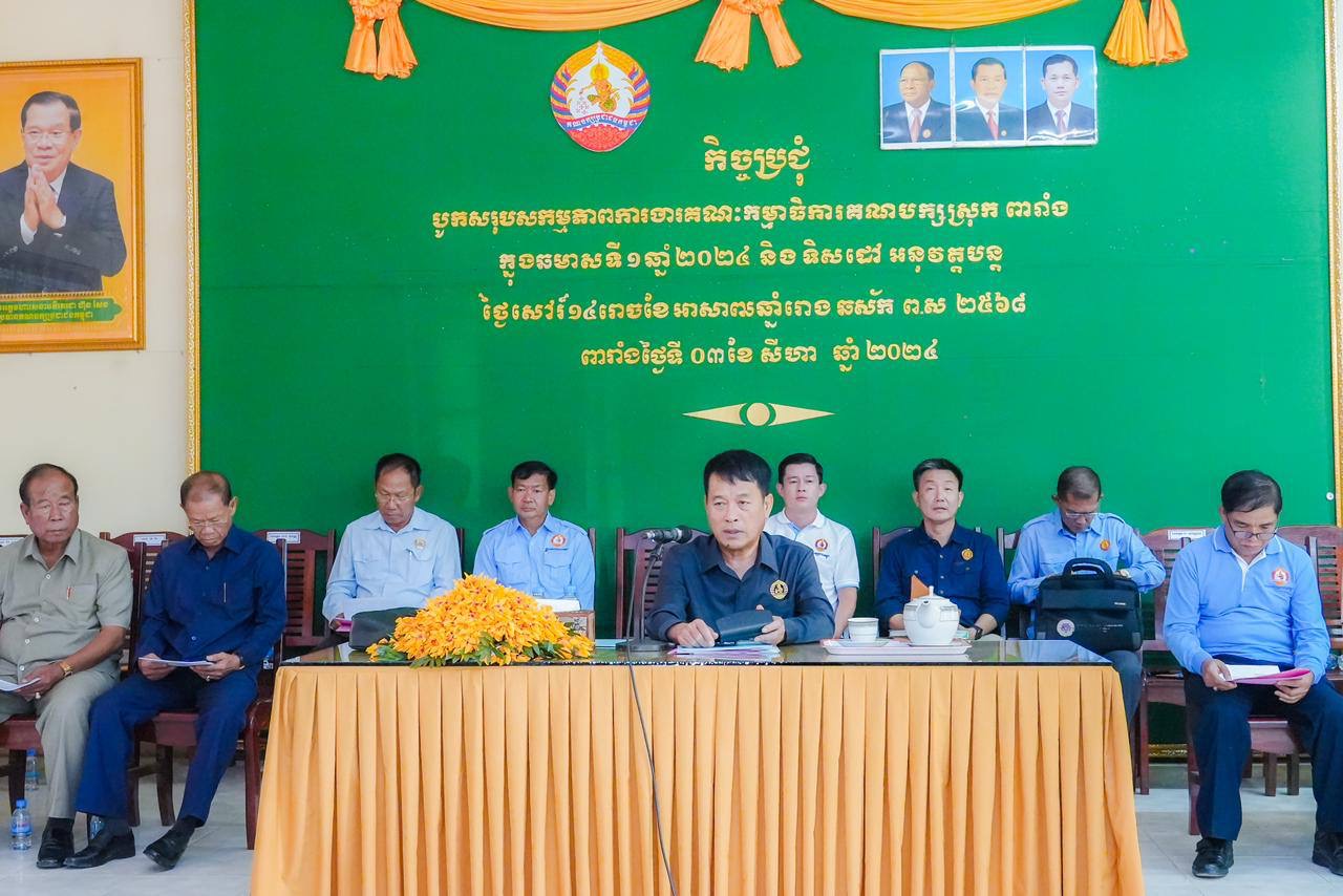 (ព្រៃវែង)៖ ព្រឹកថ្ងៃទី៣ ខែសីហា ឆ្នាំ២០២៤ ឯកឧត្តម វង្ស ពិសេន ប្រធានក្រុមការងាររាជរដ្ឋាភិបាលចុះមូលដ្ឋានស្រុកពារាំង ខេត្តព្រៃវែង បានអញ្ជើញដឹកនាំកិច្ចប្រជុំបូកសរុបលទ្ធផលការងារប្រចាំឆមាសទី១ ឆ្នាំ២០២៤ និងលើកទិសដៅការងារអនុវត្តបន្តរបស់ក្រុមការងាររាជរដ្ឋាភិបាលចុះមូលដ្ឋានស្រុកពារាំង ដែលពិធីនេះប្រព្រឹត្តទៅនៅទីស្នាក់ការគណបក្សស្រុកពារាំង។