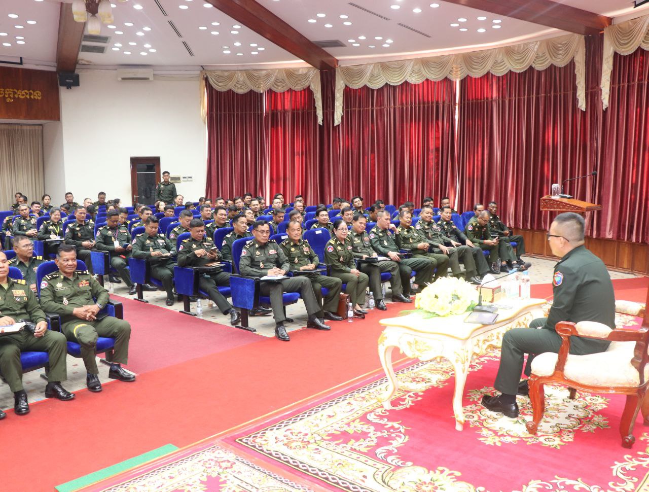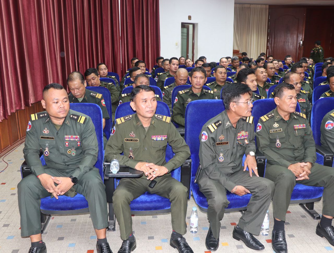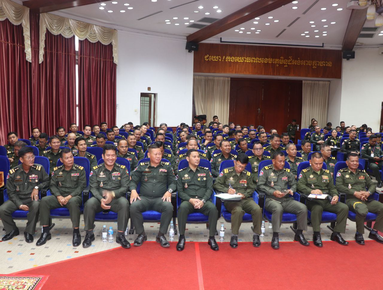 (ភ្នំពេញ)៖ ឯកឧត្តម ឧត្តមសេនីយ៍ទោ ស៊ិន សុខា នាយកទីចាត់ការការងារព្រំដែន អគ្គបញ្ជាការដ្ឋាន បានអញ្ជើញជាអធិបតីដឹកនាំកិច្ចប្រជុំផ្សព្វផ្សាយអនុសាសន៍ដ៏ខ្ពង់ខ្ពស់របស់សម្ដេចអគ្គមហាសេនាបតីតេជោ ហ៊ុន សែន ប្រធានព្រឹទ្ធសភានៃព្រះរាជាណាចក្រកម្ពុជា សម្ដេចមហាបវរធិបតី ហ៊ុន ម៉ាណែត នាយករដ្ឋមន្ត្រីនៃកម្ពុជា និងប្រសាសន៍លោកជំទាវ ចម និមល រដ្ឋមន្ត្រីក្រសួងពាណិជ្ជកម្ម ព្រមទាំងបទបញ្ជារបស់ ឯកឧត្តម នាយឧត្តមសេនីយ៍ វង្ស ពិសេន អគ្គមេបញ្ជាការនៃកងយោធពលខេមរភូមិន្ទ ដល់នាយទាហាន នាយទាហានរង និពលទាហានចំណុះទីចាត់ការការងារព្រំដែនចំនួន ២១៨នាក់។