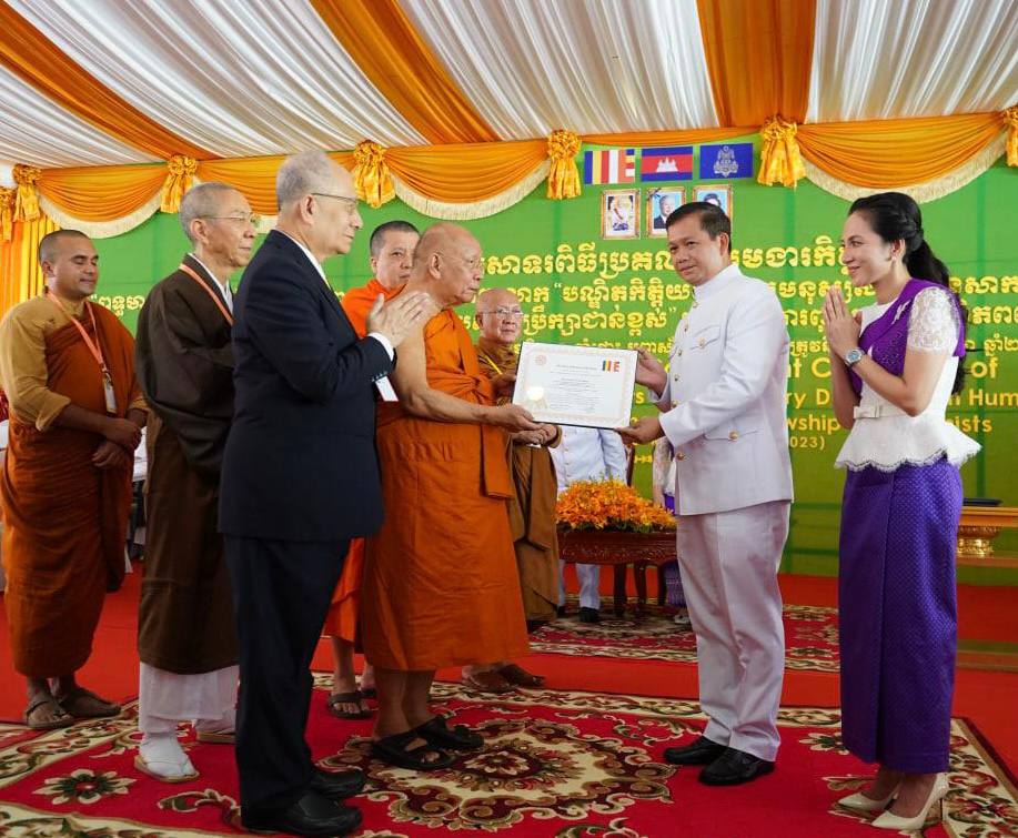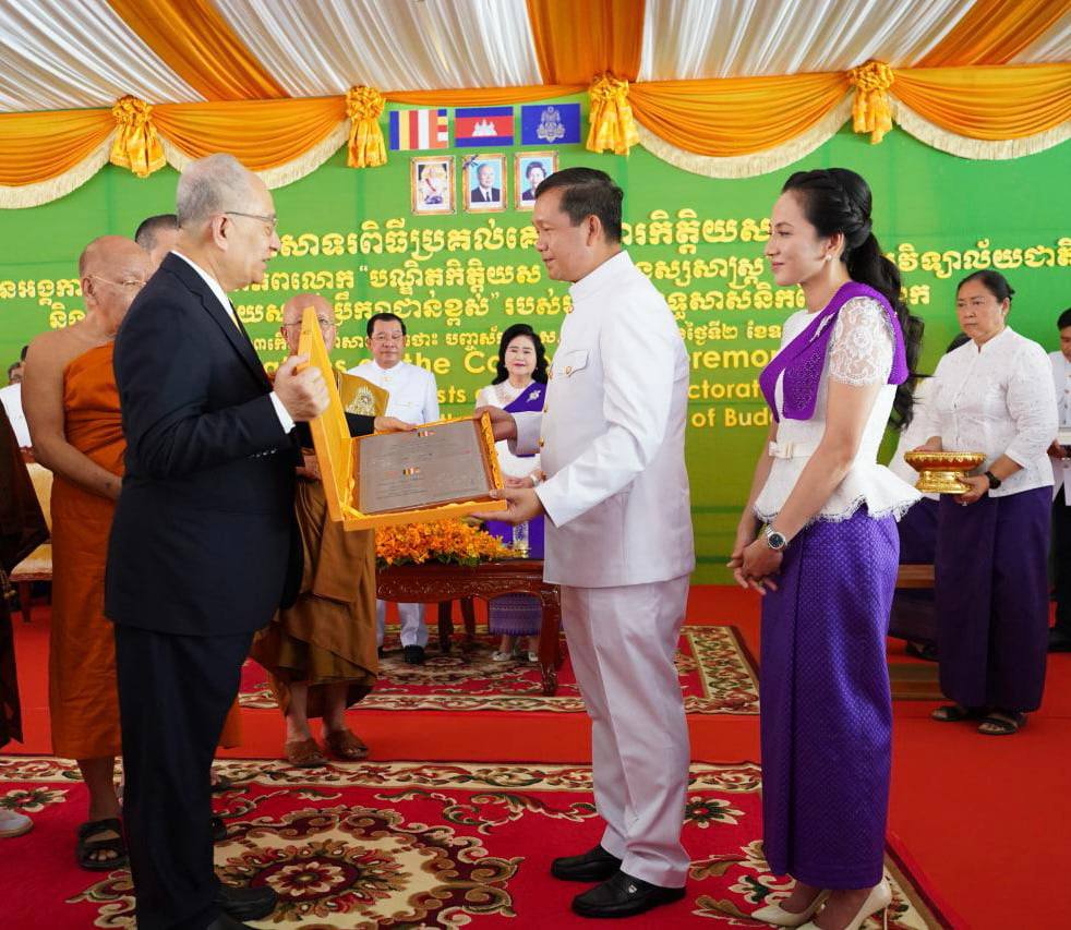 ការផ្តល់គោរមងារកិត្តិយសនេះ ក៏ជាការទទួលស្គាល់សមិទ្ធផលឆ្នើមរបស់ ឯកឧត្ដម ក្នុងការផ្តល់អាហារូបករណ៍រាប់ពាន់កន្លែងដល់យុវជនកម្ពុជា ដើម្បីឱ្យពួកគេមានឱកាសបានសិក្សានៅសាកលវិទ្យាល័យនានាទូទាំងប្រទេស។ ការរួមចំណែកដ៏ថ្លៃថ្នូរជាប្រយោជន៍សង្គមដ៏គួរឱ្យកត់សម្គាល់ទាំងនេះ គឺជាសក្ខីកម្មនៃទង្វើប្រកបដោយគុណធម៌របស់ឯកឧត្ដម ដែលស្របនឹងពុទ្ធឱវាទរបស់ព្រះពុទ្ធអង្គ។